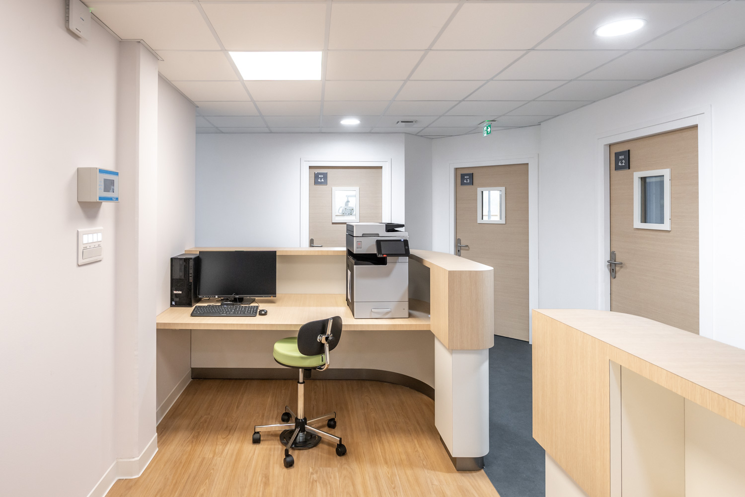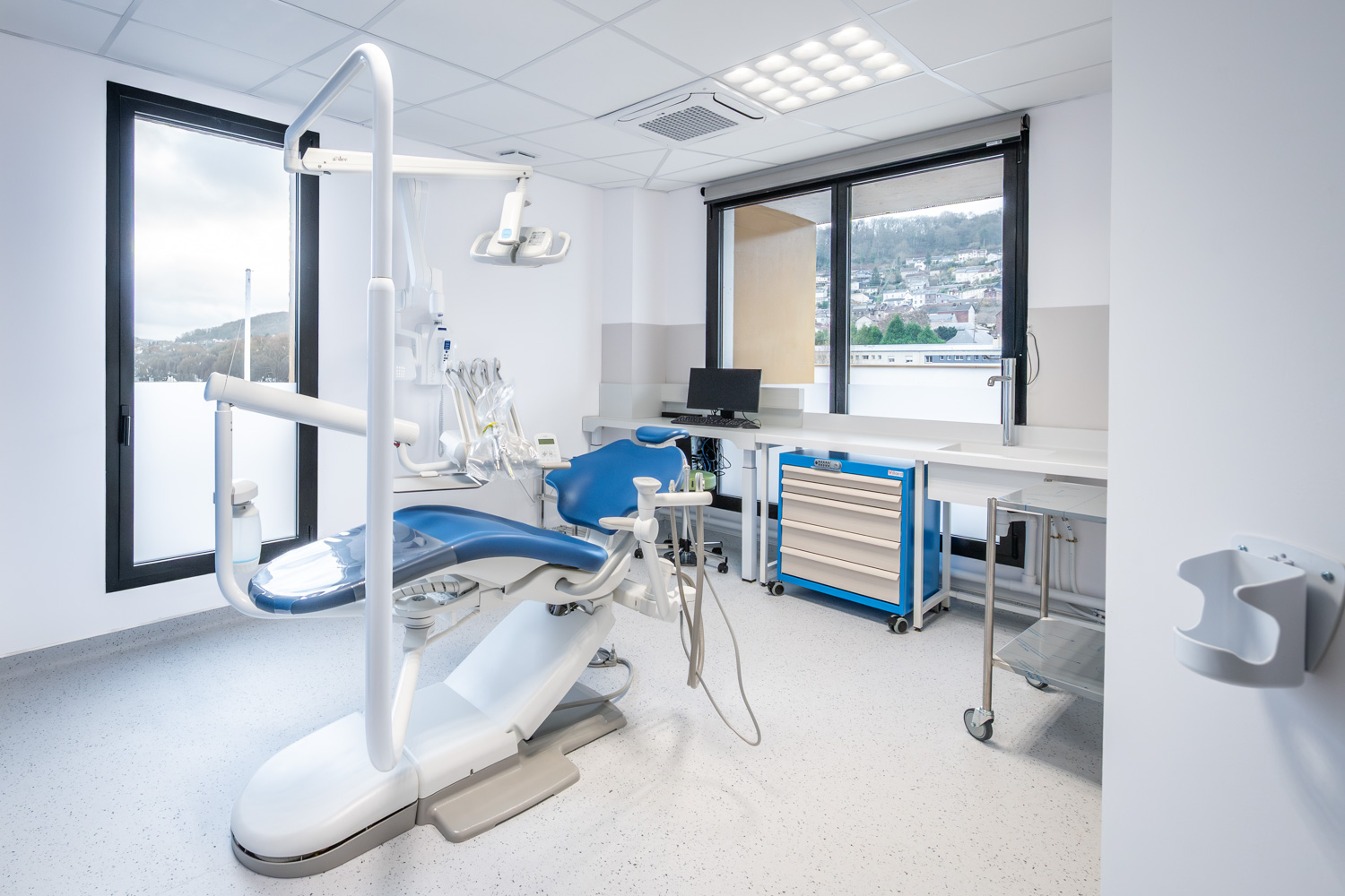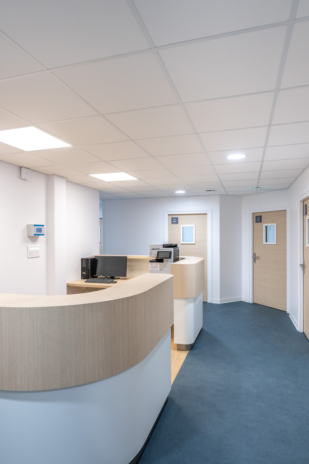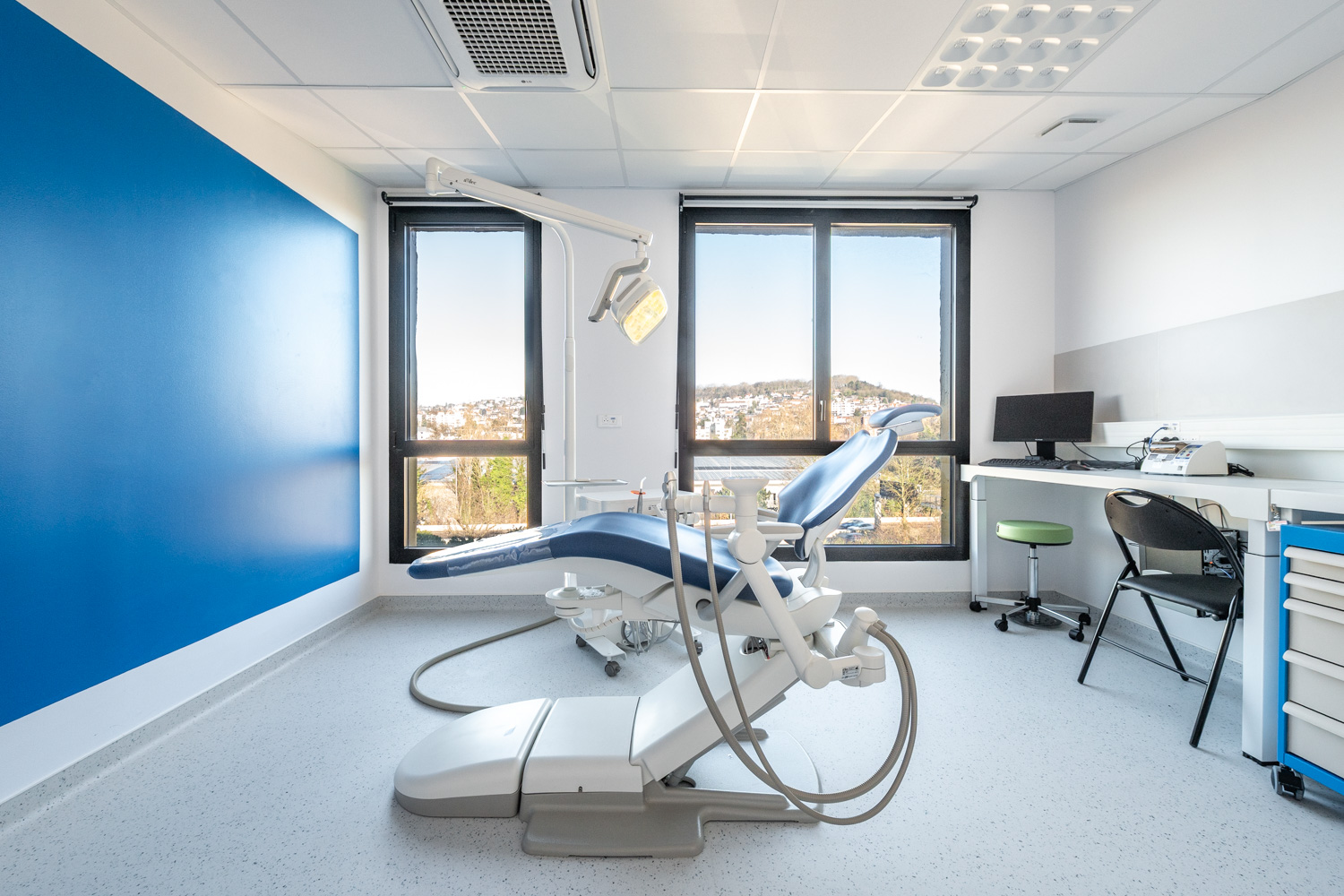 ATAUB Architectes nous a commandé une série de photos de leur réalisation pour le CHU de Rouen pour le nouveau département d’odontologie. L’opération consistait en l’aménagement dans un bâtiment existant, sur 2 étages en R+4 et R+5, de 17 boxes soins avec fauteuils d’odontologie, des locaux techniques, salles de radio, stérilisation, et ateliers de fabrication de prothèses, espaces d’accueil et d’attentes, bureaux, secrétariat, salles de réunion, salles de détente et vestiaires.