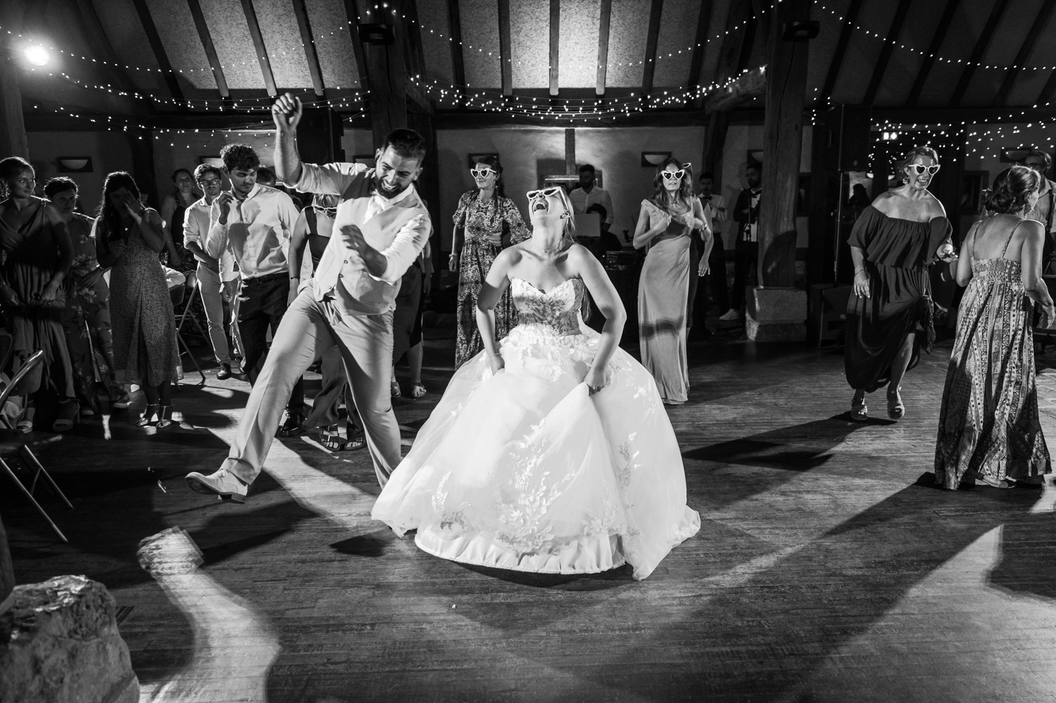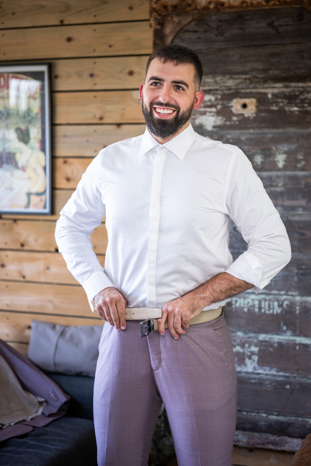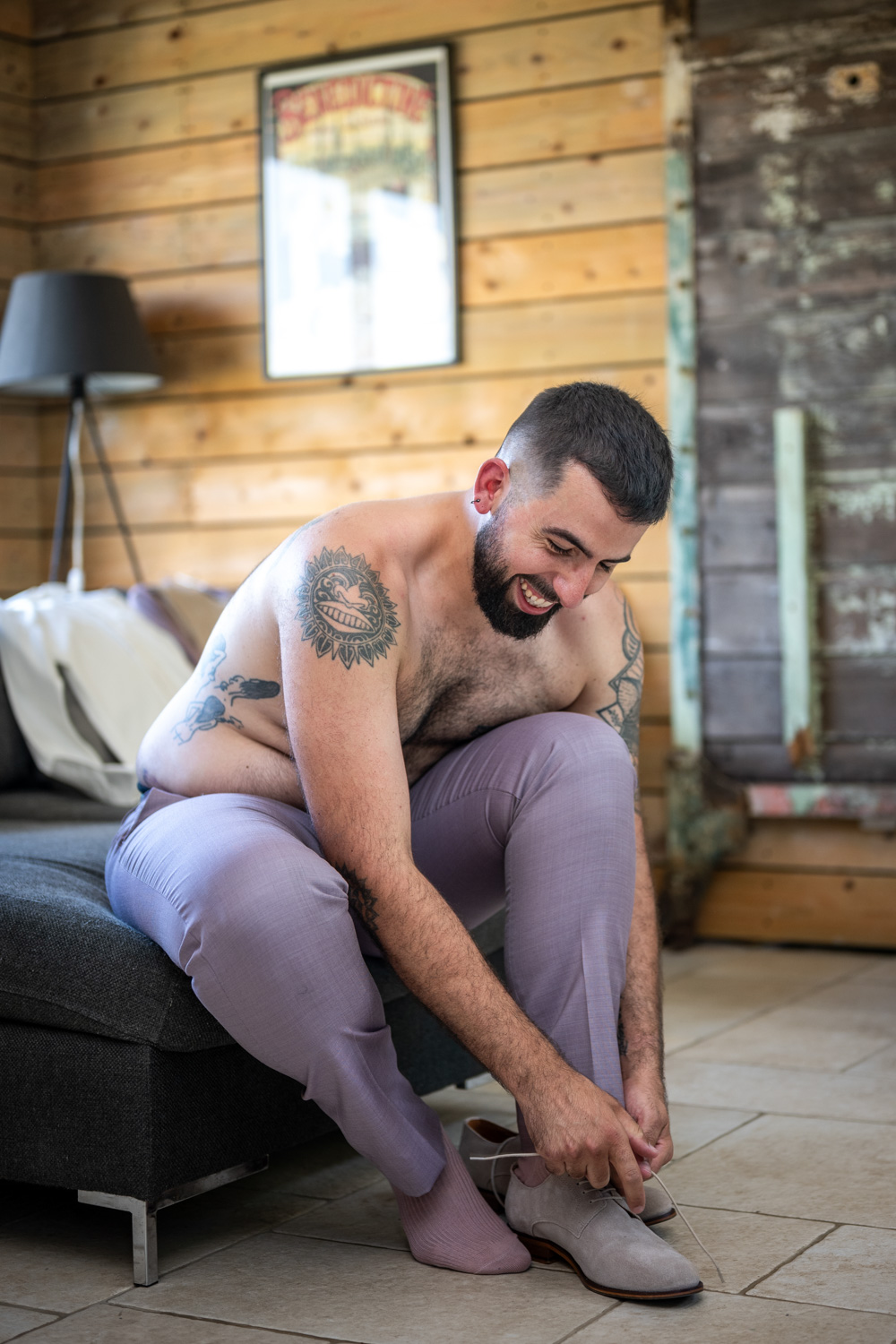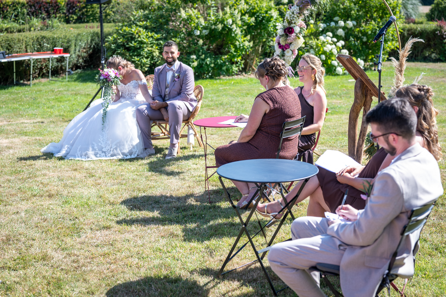 Nous avons immortalisé leur journée des préparatifs dans un gîte loué pour l’occasion, jusqu’à leur ouverture de bal, sans oublier évidemment leur belle cérémonie laïque réalisé sous un soleil de plomb mais avec une partie de beer pong et un magistral chifoumi entre les mariés pour décider qui lira ses voeux à l’autre en premier !