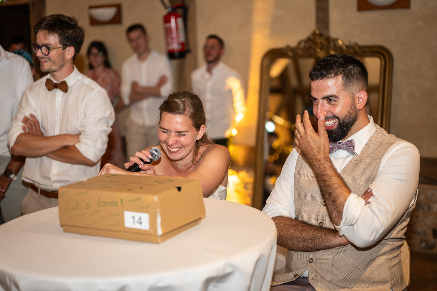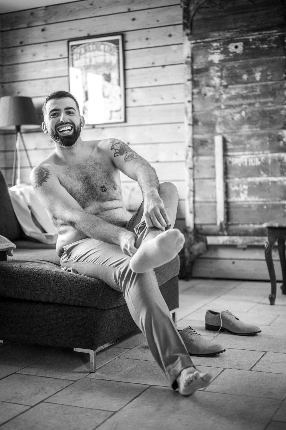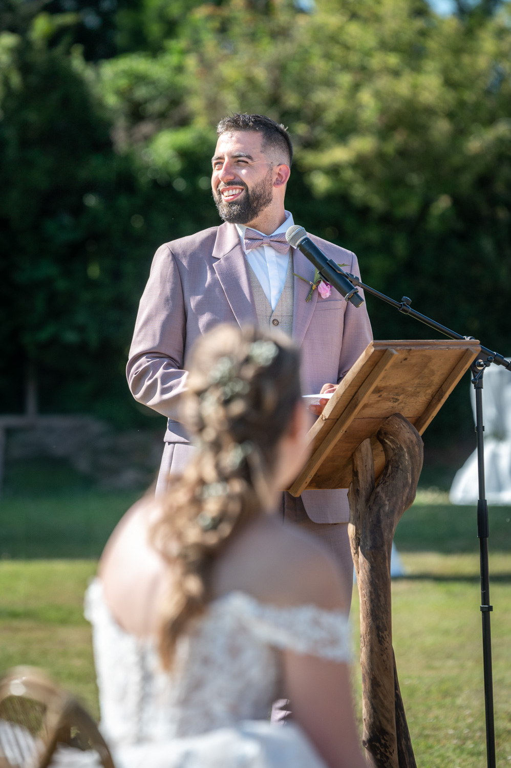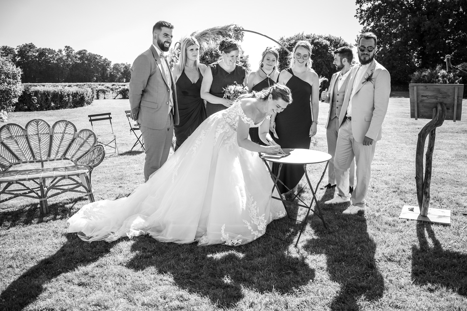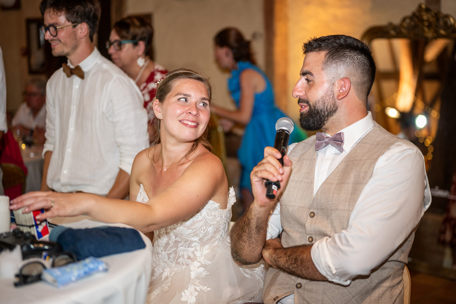 Nous avons immortalisé leur journée des préparatifs dans un gîte loué pour l’occasion, jusqu’à leur ouverture de bal, sans oublier évidemment leur belle cérémonie laïque réalisé sous un soleil de plomb mais avec une partie de beer pong et un magistral chifoumi entre les mariés pour décider qui lira ses voeux à l’autre en premier !