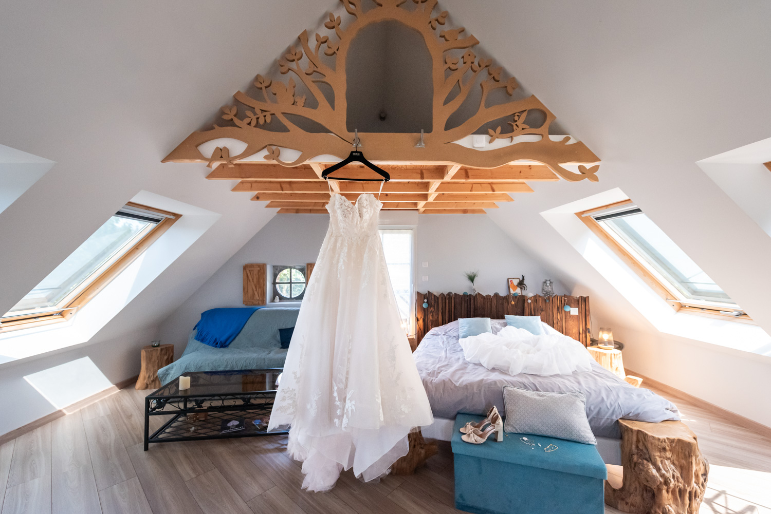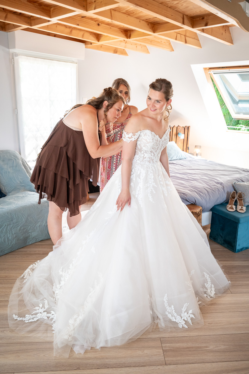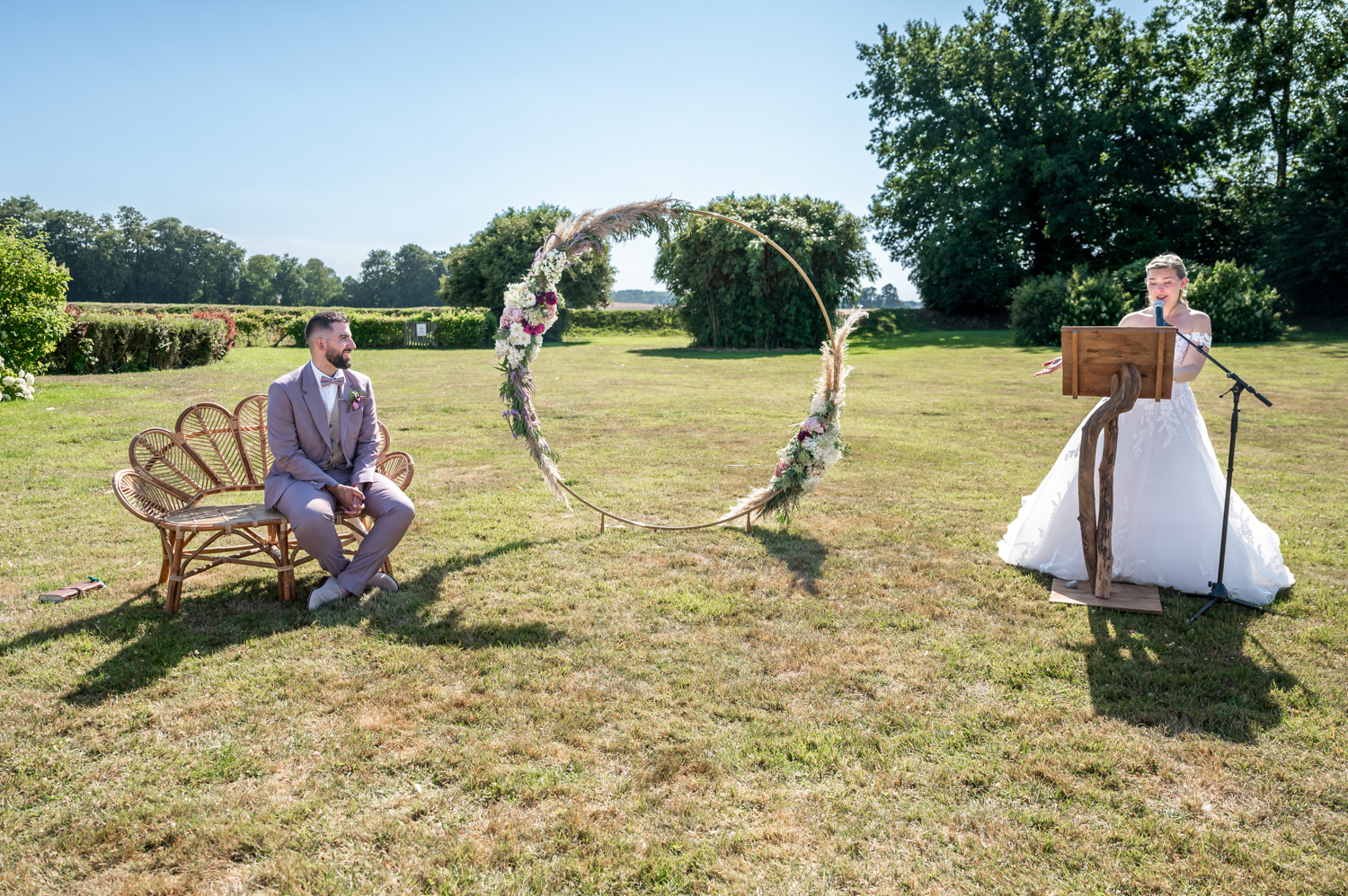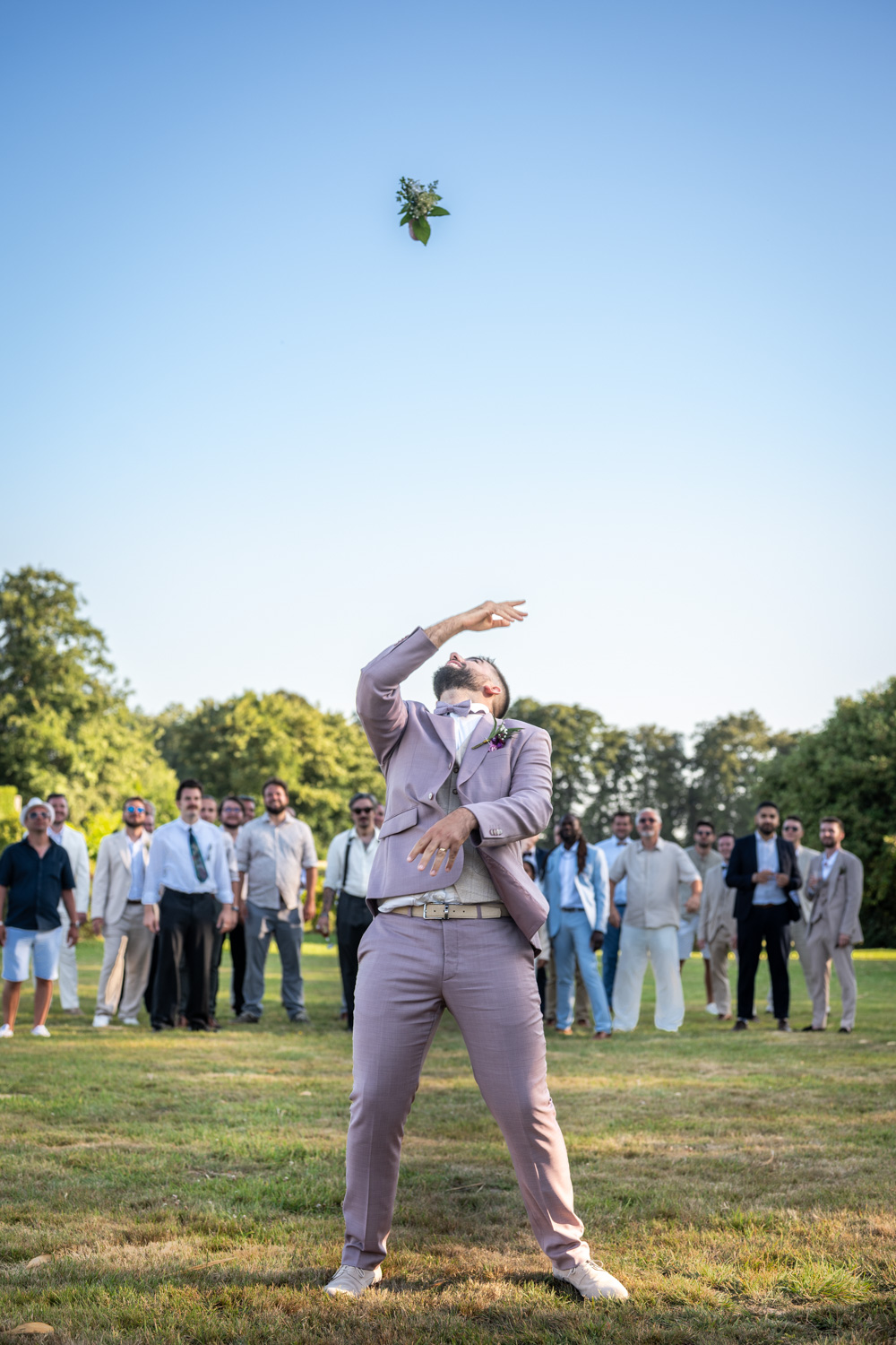 Nous avons immortalisé leur journée des préparatifs dans un gîte loué pour l’occasion, jusqu’à leur ouverture de bal, sans oublier évidemment leur belle cérémonie laïque réalisé sous un soleil de plomb mais avec une partie de beer pong et un magistral chifoumi entre les mariés pour décider qui lira ses voeux à l’autre en premier !