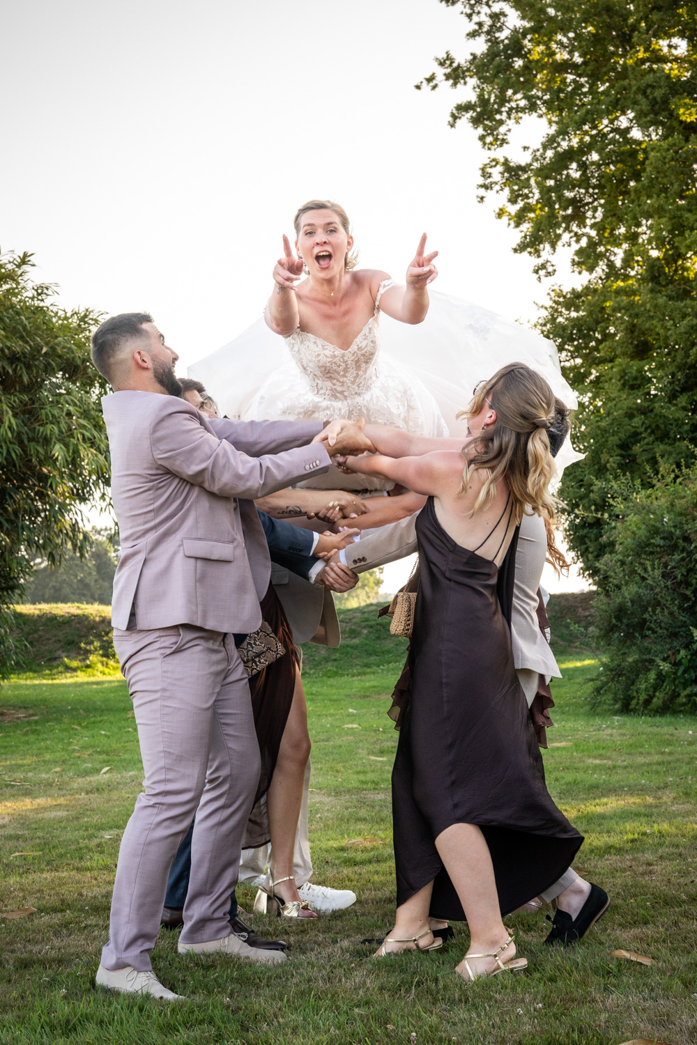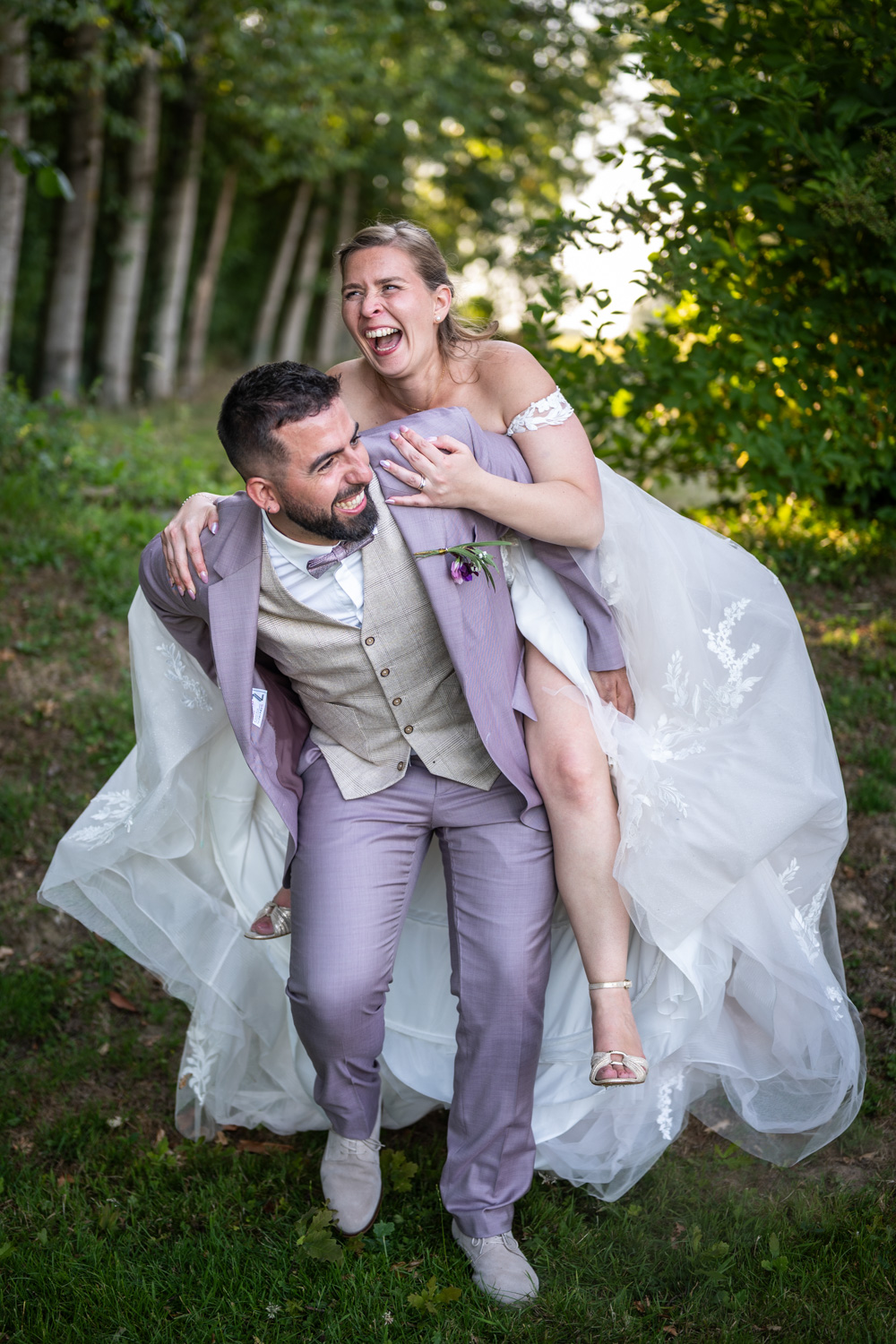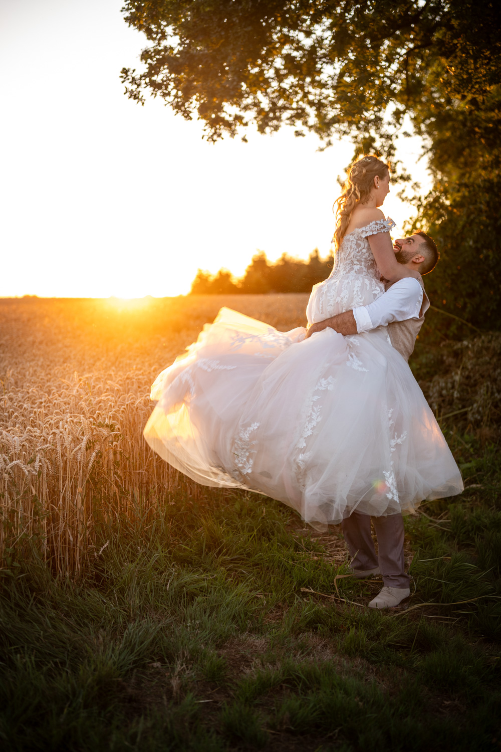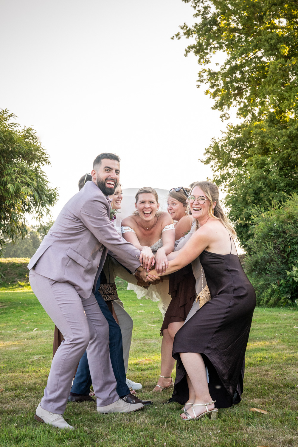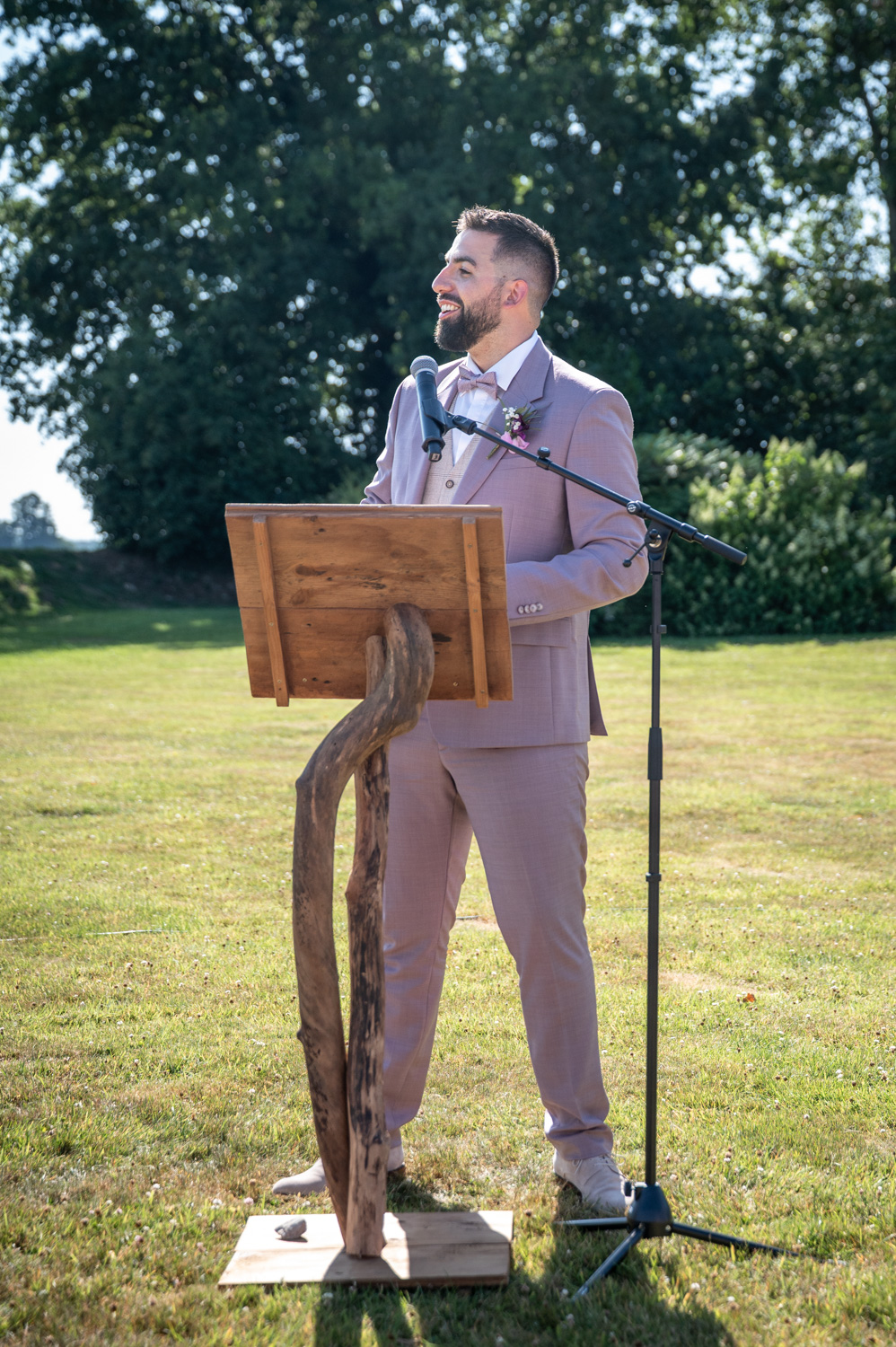 Nous avons immortalisé leur journée des préparatifs dans un gîte loué pour l’occasion, jusqu’à leur ouverture de bal, sans oublier évidemment leur belle cérémonie laïque réalisé sous un soleil de plomb mais avec une partie de beer pong et un magistral chifoumi entre les mariés pour décider qui lira ses voeux à l’autre en premier !