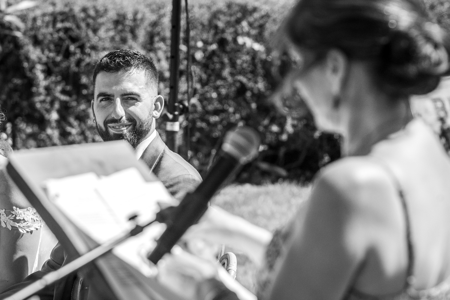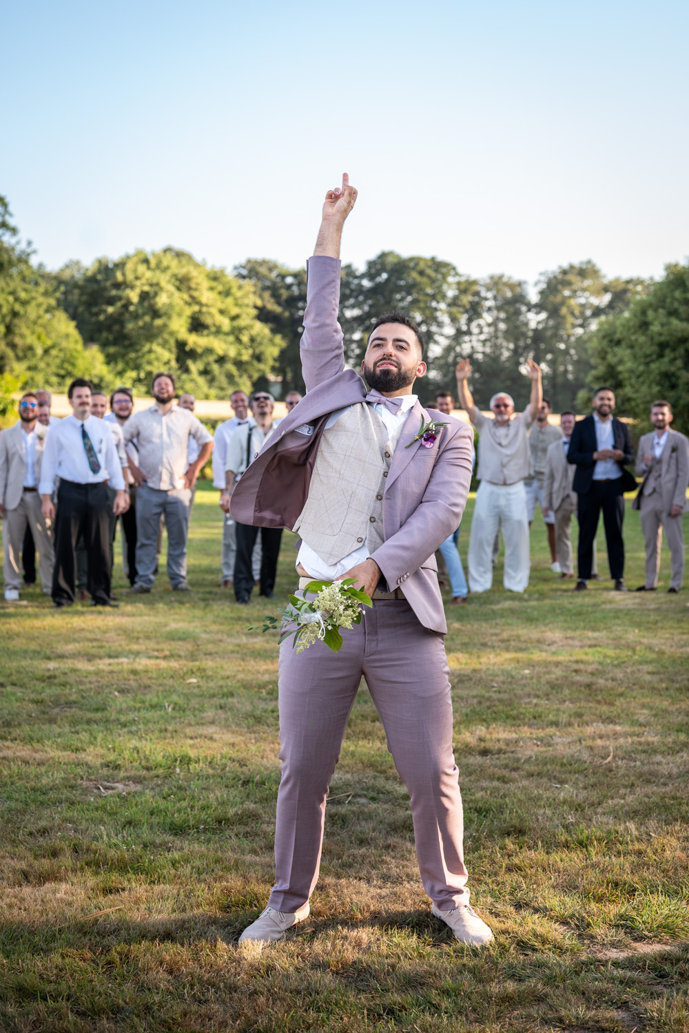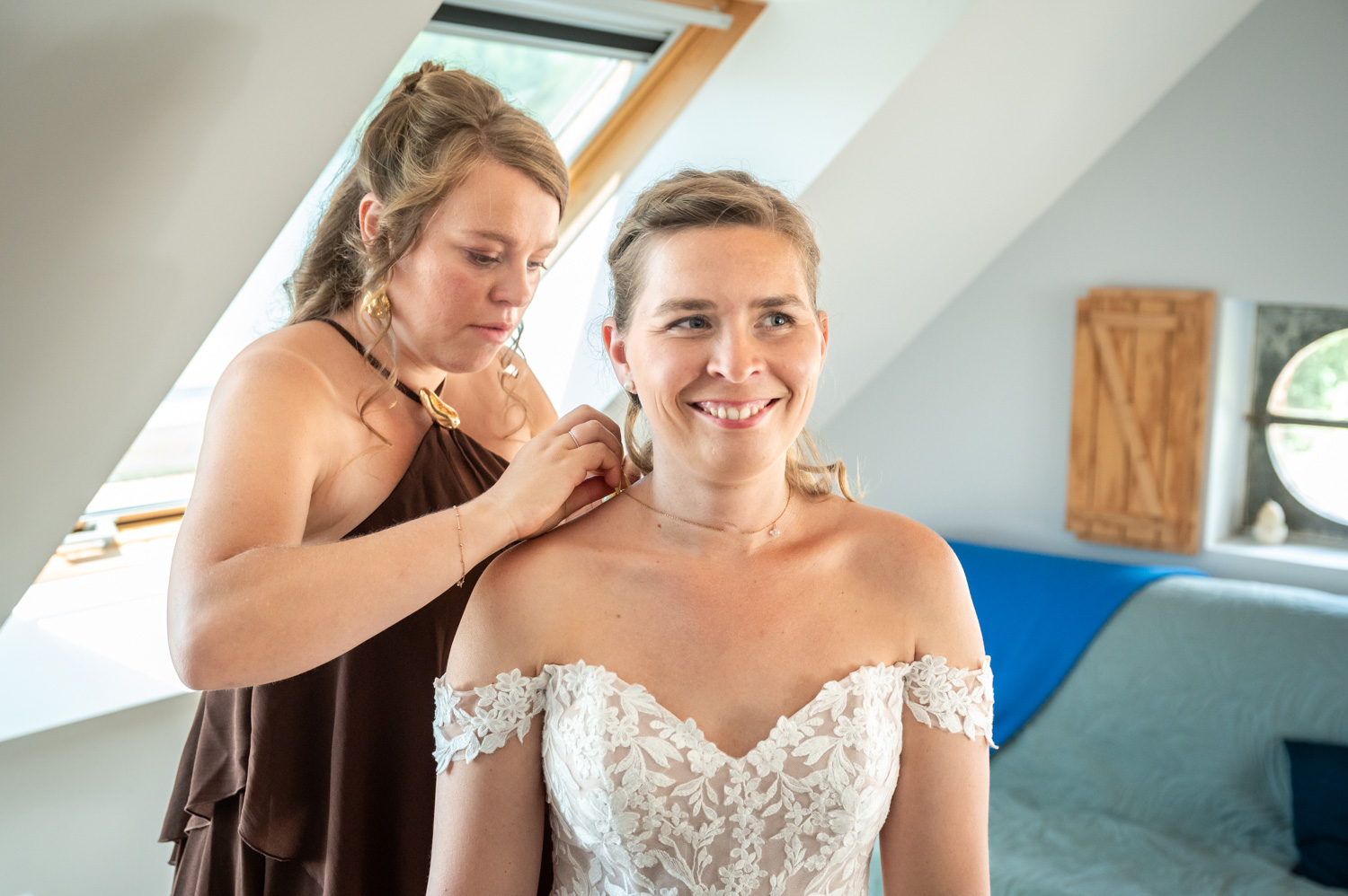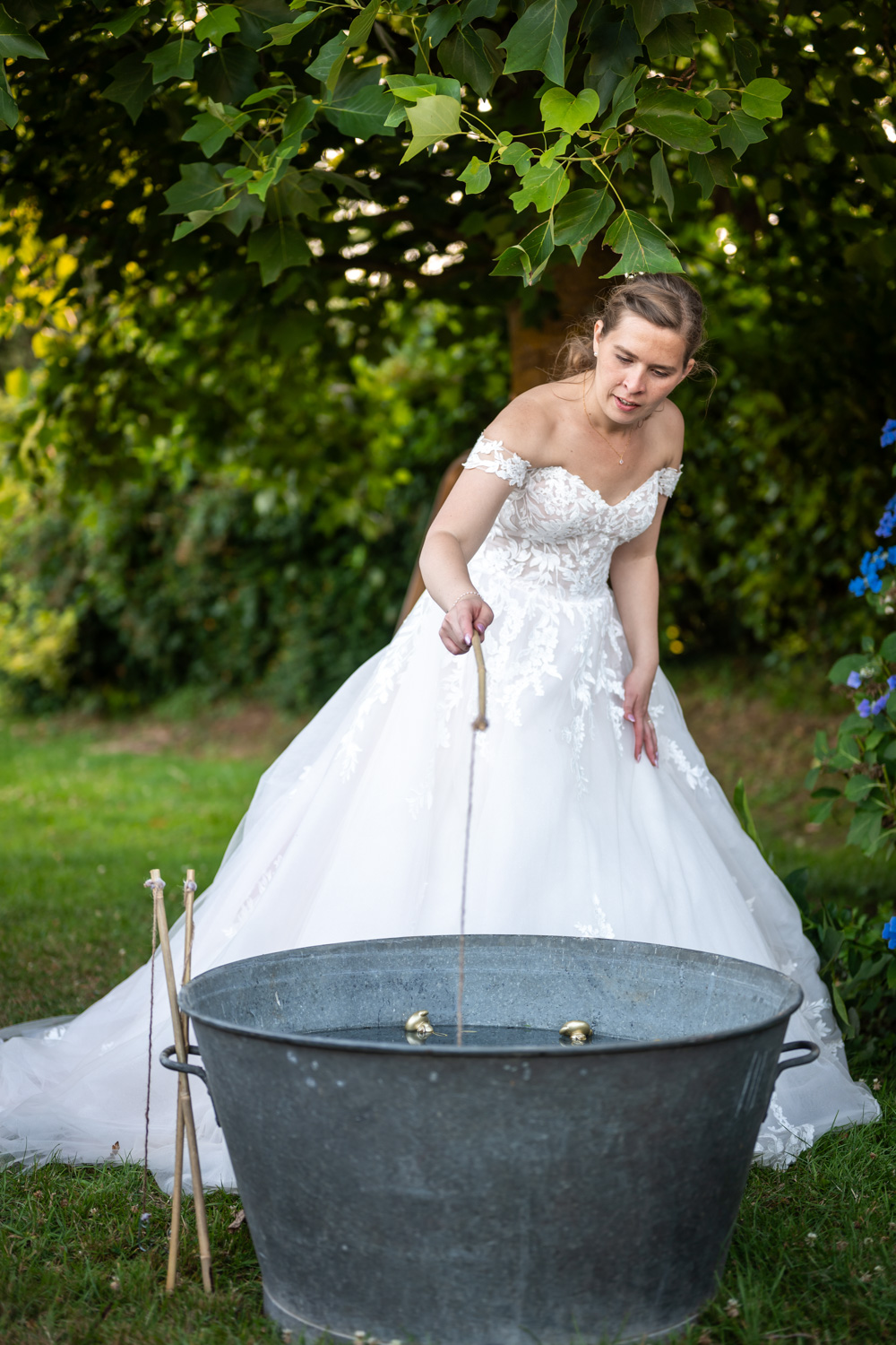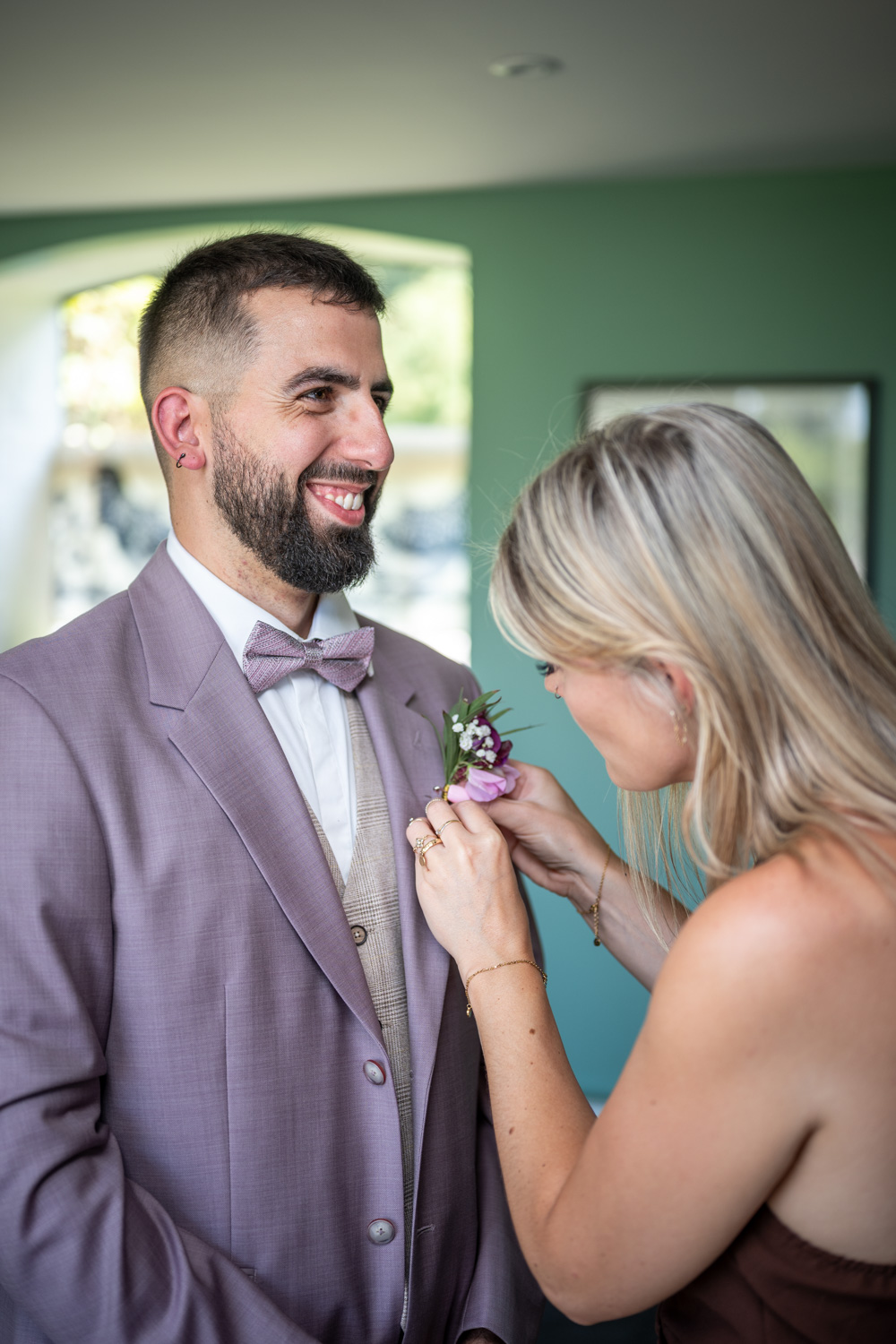 Nous avons immortalisé leur journée des préparatifs dans un gîte loué pour l’occasion, jusqu’à leur ouverture de bal, sans oublier évidemment leur belle cérémonie laïque réalisé sous un soleil de plomb mais avec une partie de beer pong et un magistral chifoumi entre les mariés pour décider qui lira ses voeux à l’autre en premier !