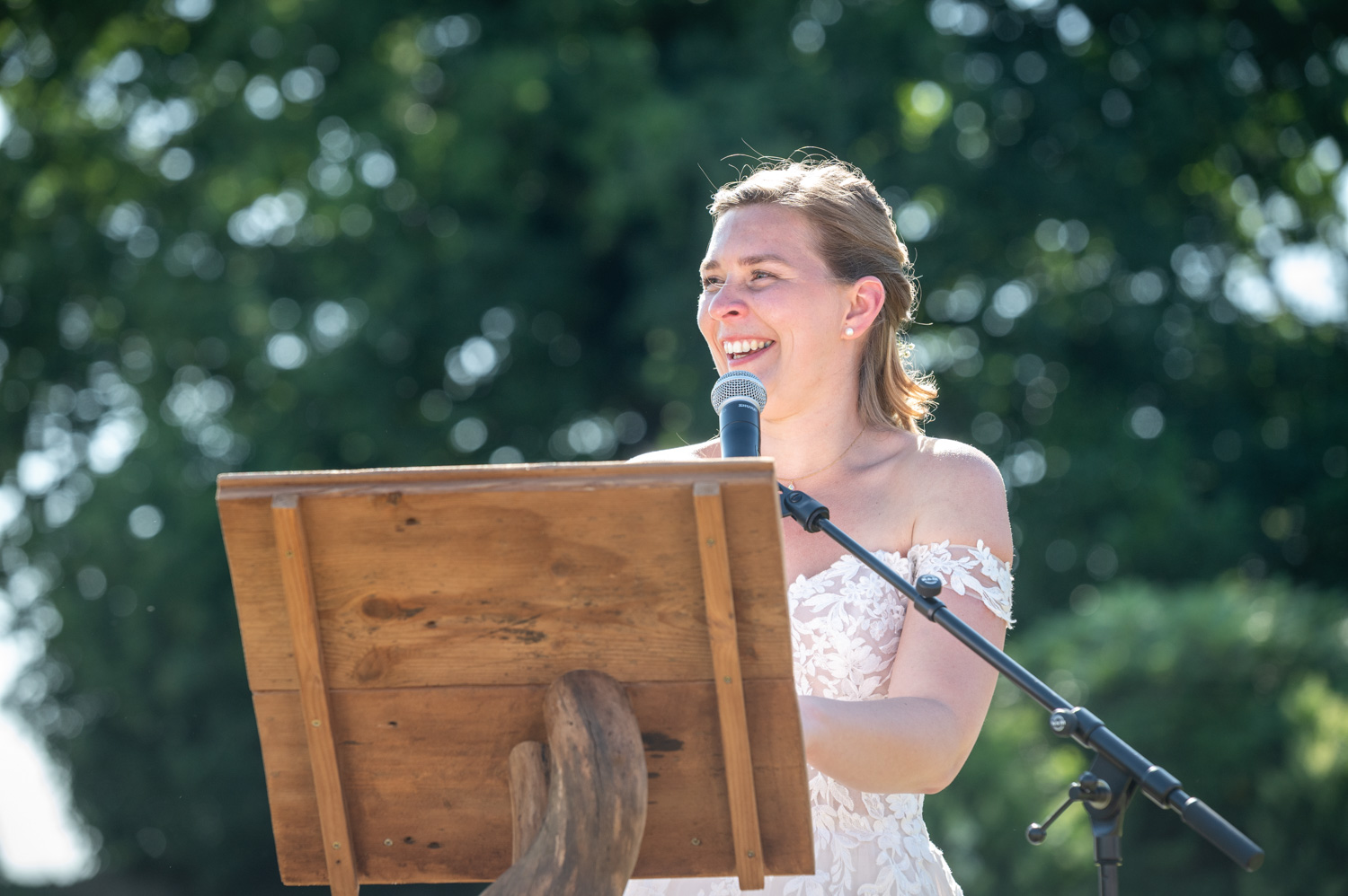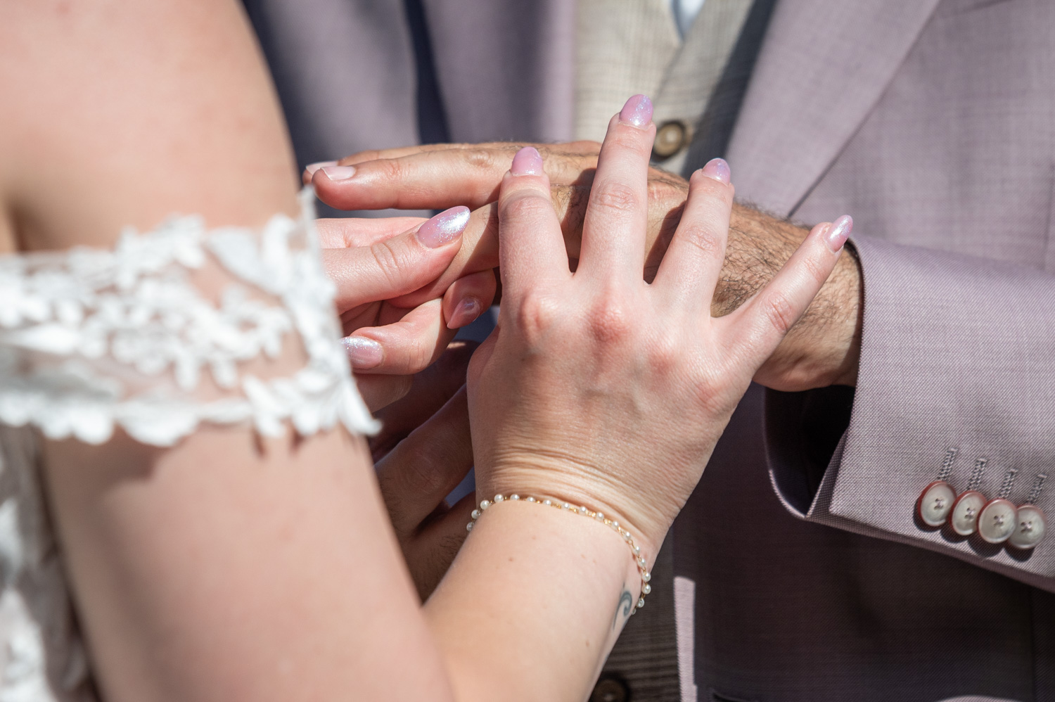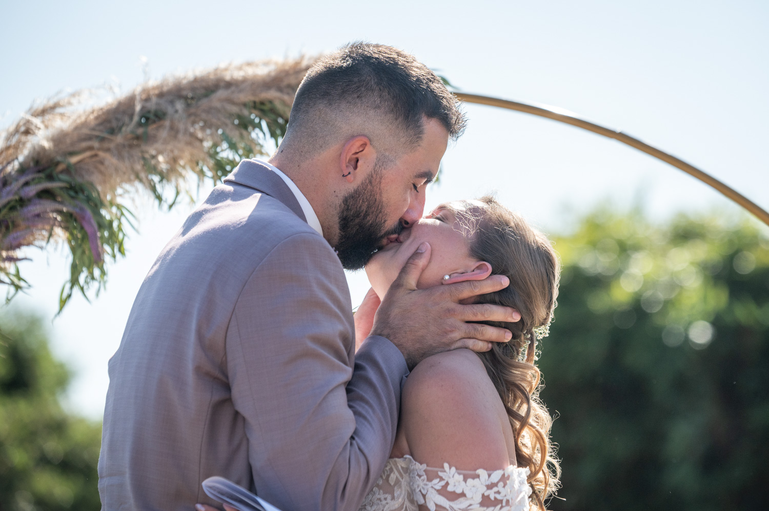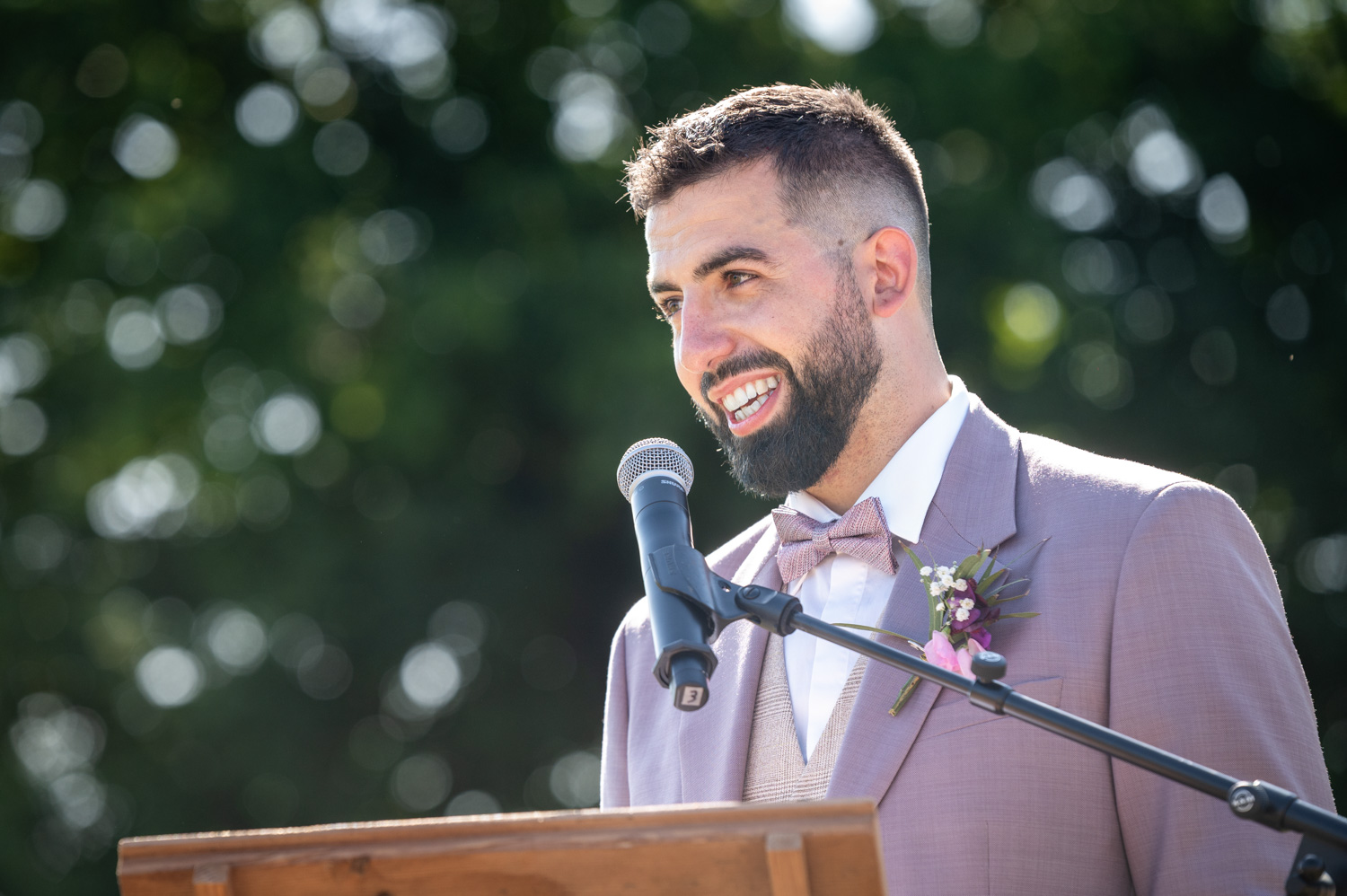 Nous avons immortalisé leur journée des préparatifs dans un gîte loué pour l’occasion, jusqu’à leur ouverture de bal, sans oublier évidemment leur belle cérémonie laïque réalisé sous un soleil de plomb mais avec une partie de beer pong et un magistral chifoumi entre les mariés pour décider qui lira ses voeux à l’autre en premier !
