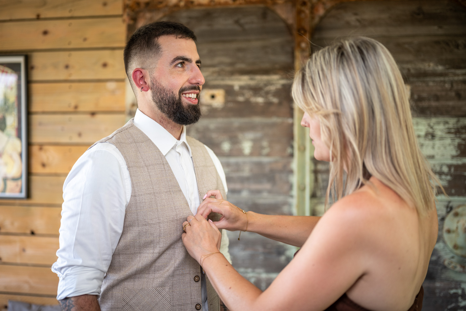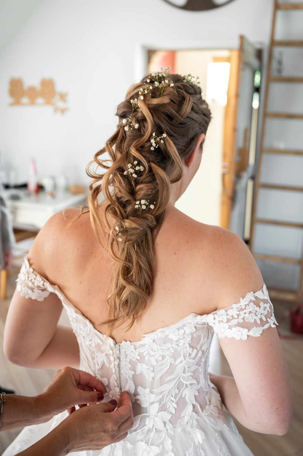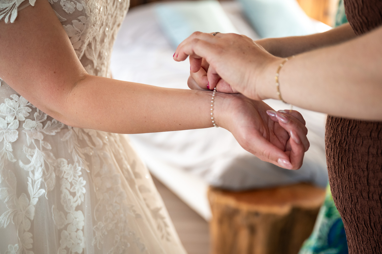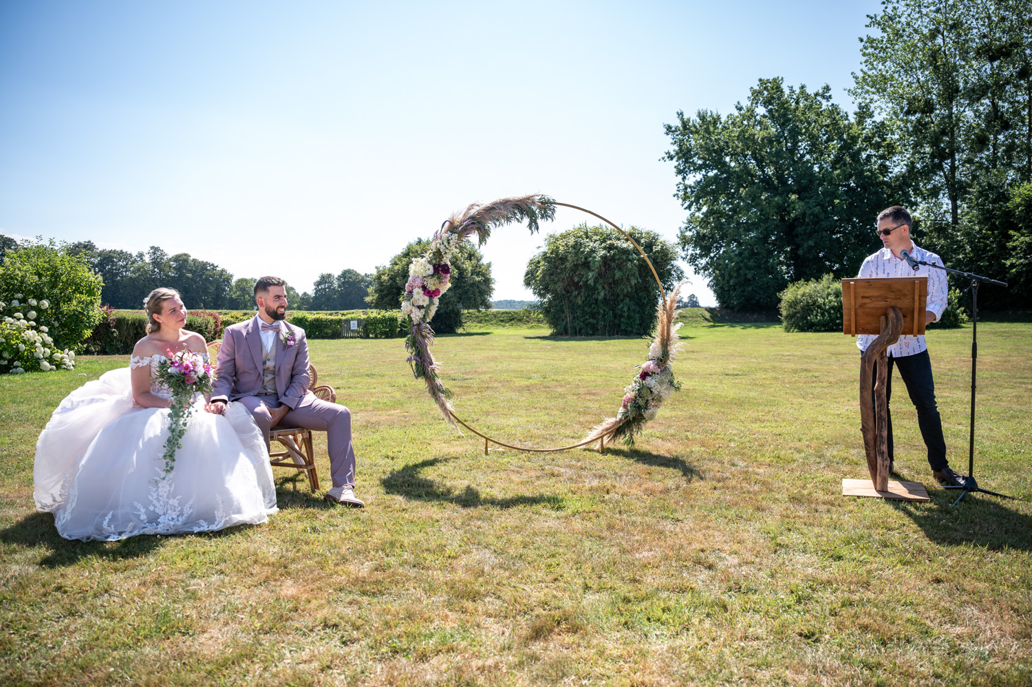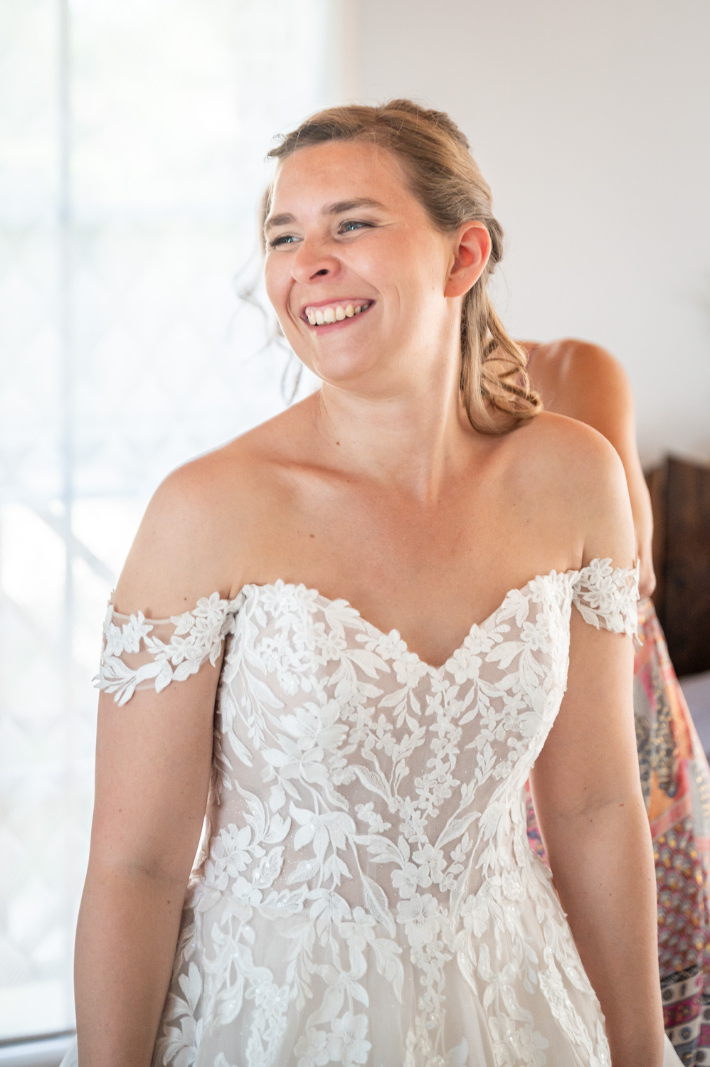 Nous avons immortalisé leur journée des préparatifs dans un gîte loué pour l’occasion, jusqu’à leur ouverture de bal, sans oublier évidemment leur belle cérémonie laïque réalisé sous un soleil de plomb mais avec une partie de beer pong et un magistral chifoumi entre les mariés pour décider qui lira ses voeux à l’autre en premier !