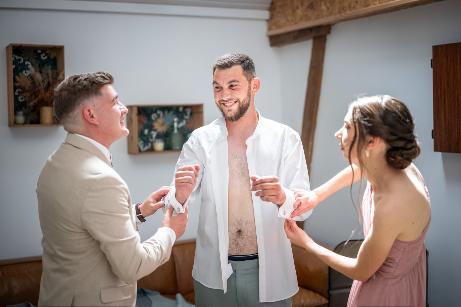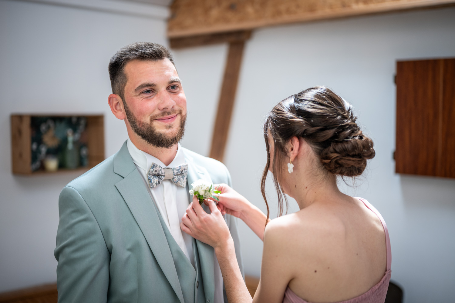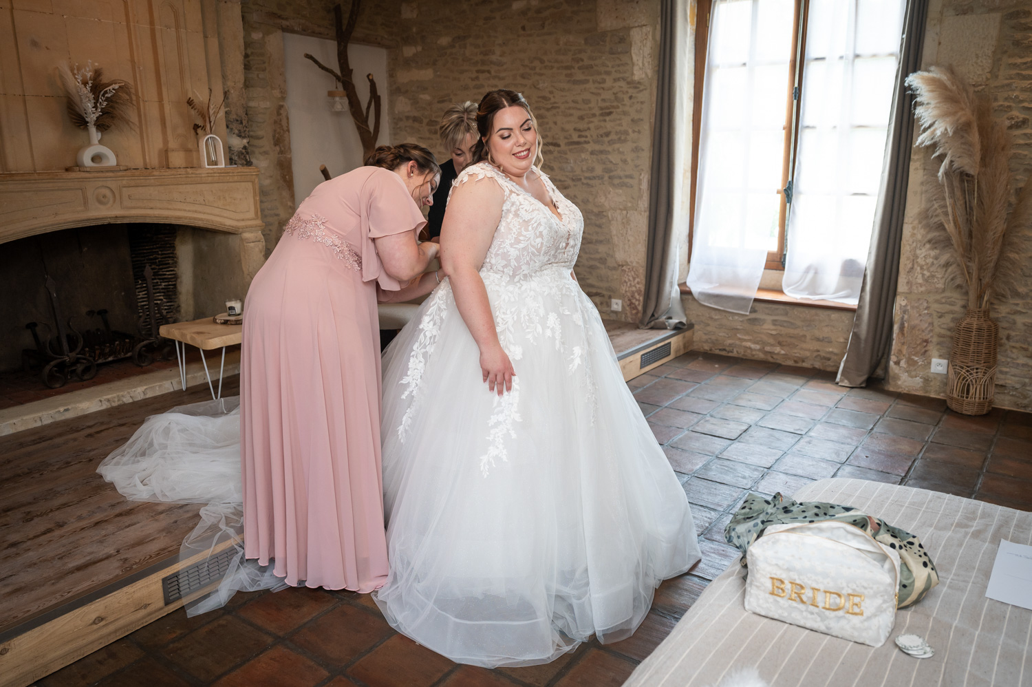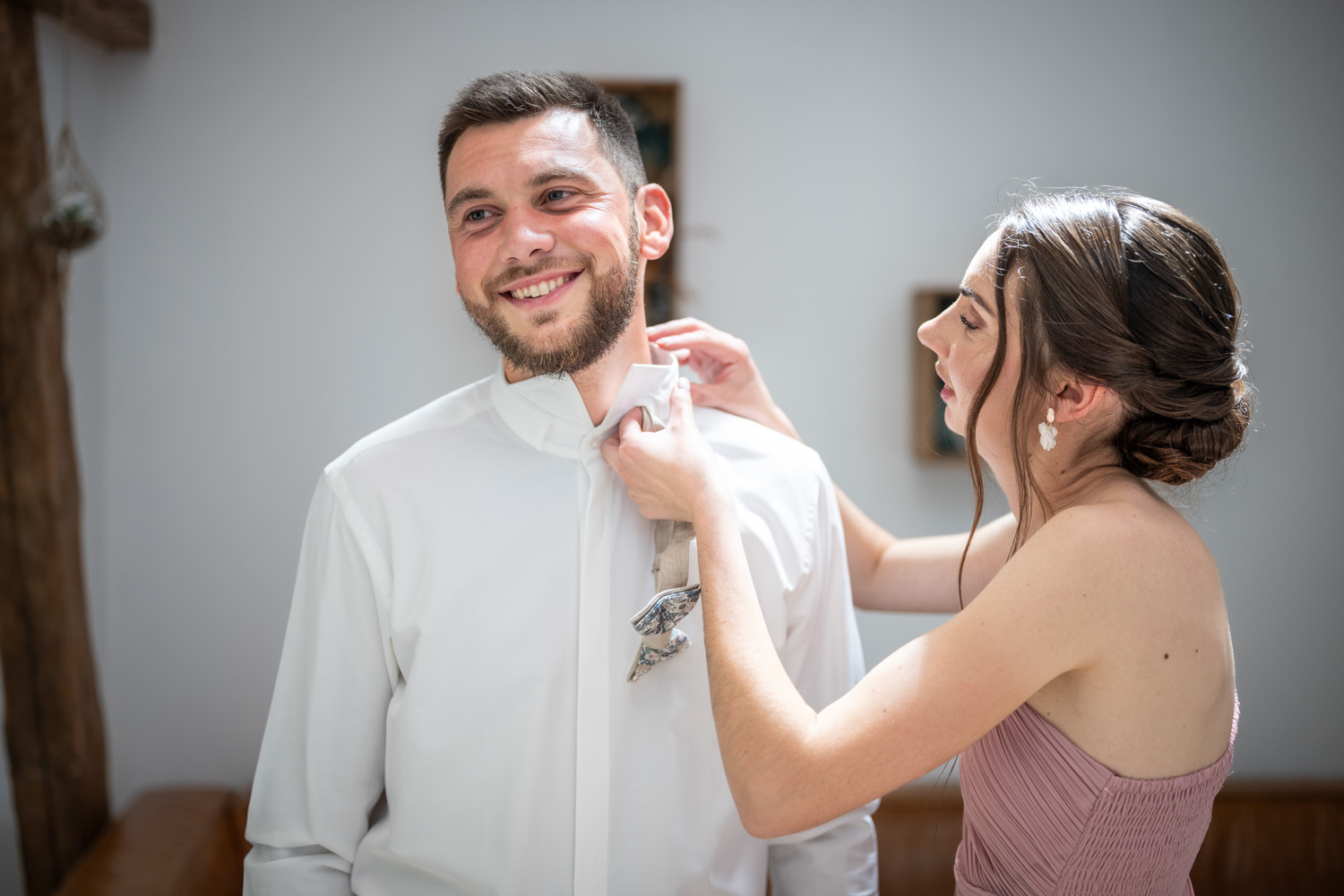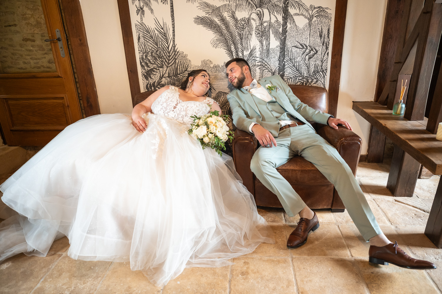Quand Audrey et Clément nous ont contactés lors de leur recherche de photographes de mariage ils en étaient au tout début de leur projet. Mais en quelques minutes le rendez-vous s’est transformé en discussion fluide ponctuée de rires grâce à leur bienveillance, leur bonne humeur et leur humour. Ces adjectifs résument finalement très bien leur journée de mariage ! Pour l’occasion ils ont choisi d’organiser un bel évènement dans le Domaine du Bû sur Rouvre dans le Calvados. Ils s’y sont préparés et découverts en toute intimité, puis après un passage à la mairie ils y ont organisé une cérémonie laïque pleine d’émotions. Le vin d’honneur quant à lui à été donné dans la grange et les jardins du domaine jusqu’au coucher du soleil, moment où leurs proches ont rejoint la salle du dîner puis la piste de danse.