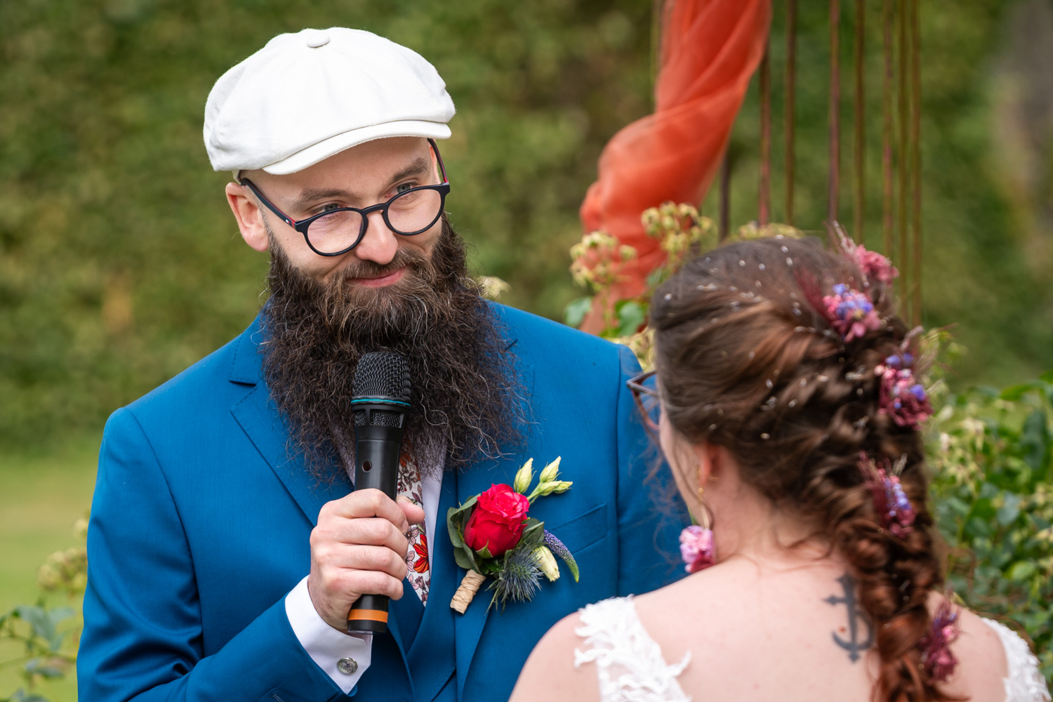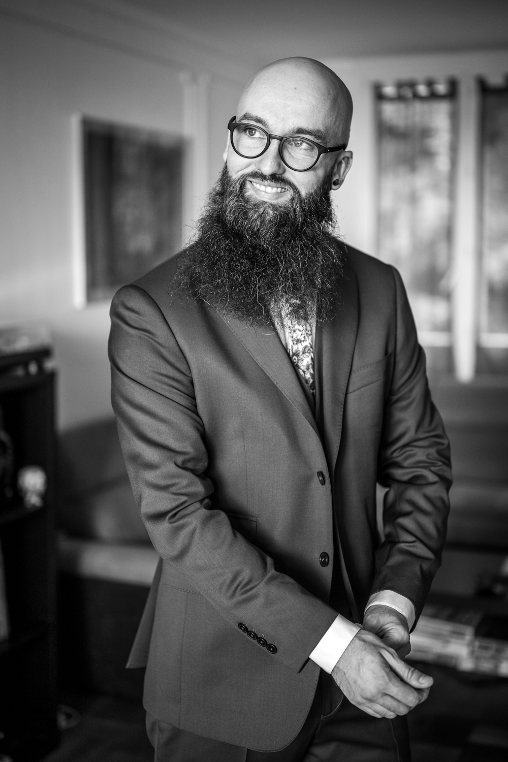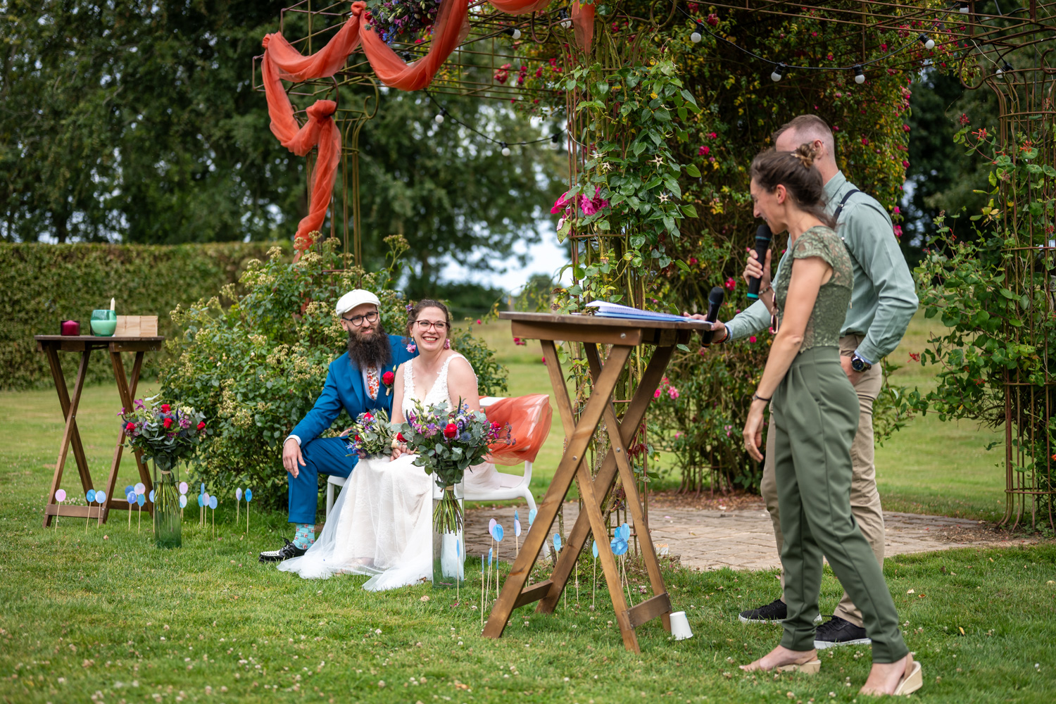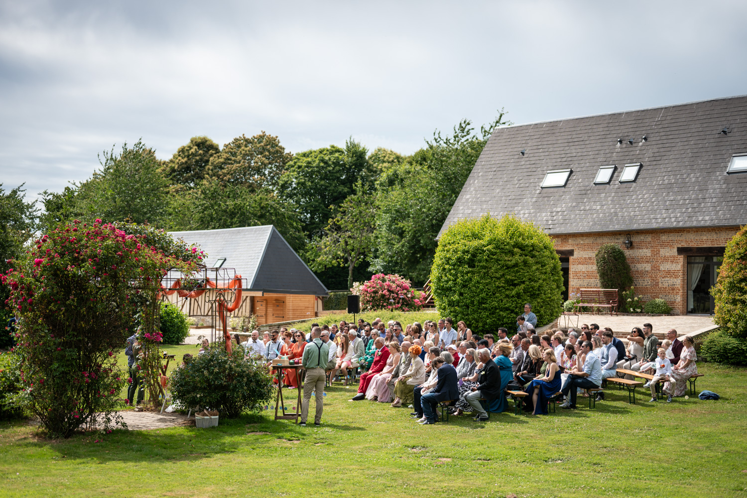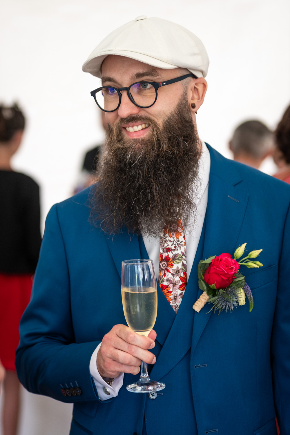 Le jour de leur mariage, ils se sont chacun préparés avec leurs témoins dans une ambiance chill et en musique évidemment ! Puis direction l’hôtel du ville du Havre pour se marier ! La suite de la journée s’est ensuite déroulée intégralement à la Ferme de Drumare pour y célébrer une cérémonie laïque touchante, une cocktail sous la pluie et un repas rythmé à grands coups de riffs de guitare saturés.