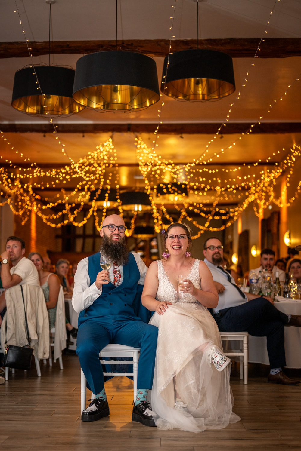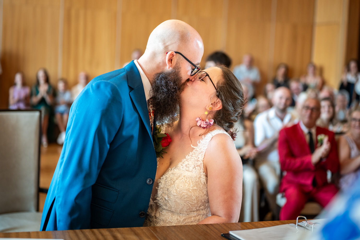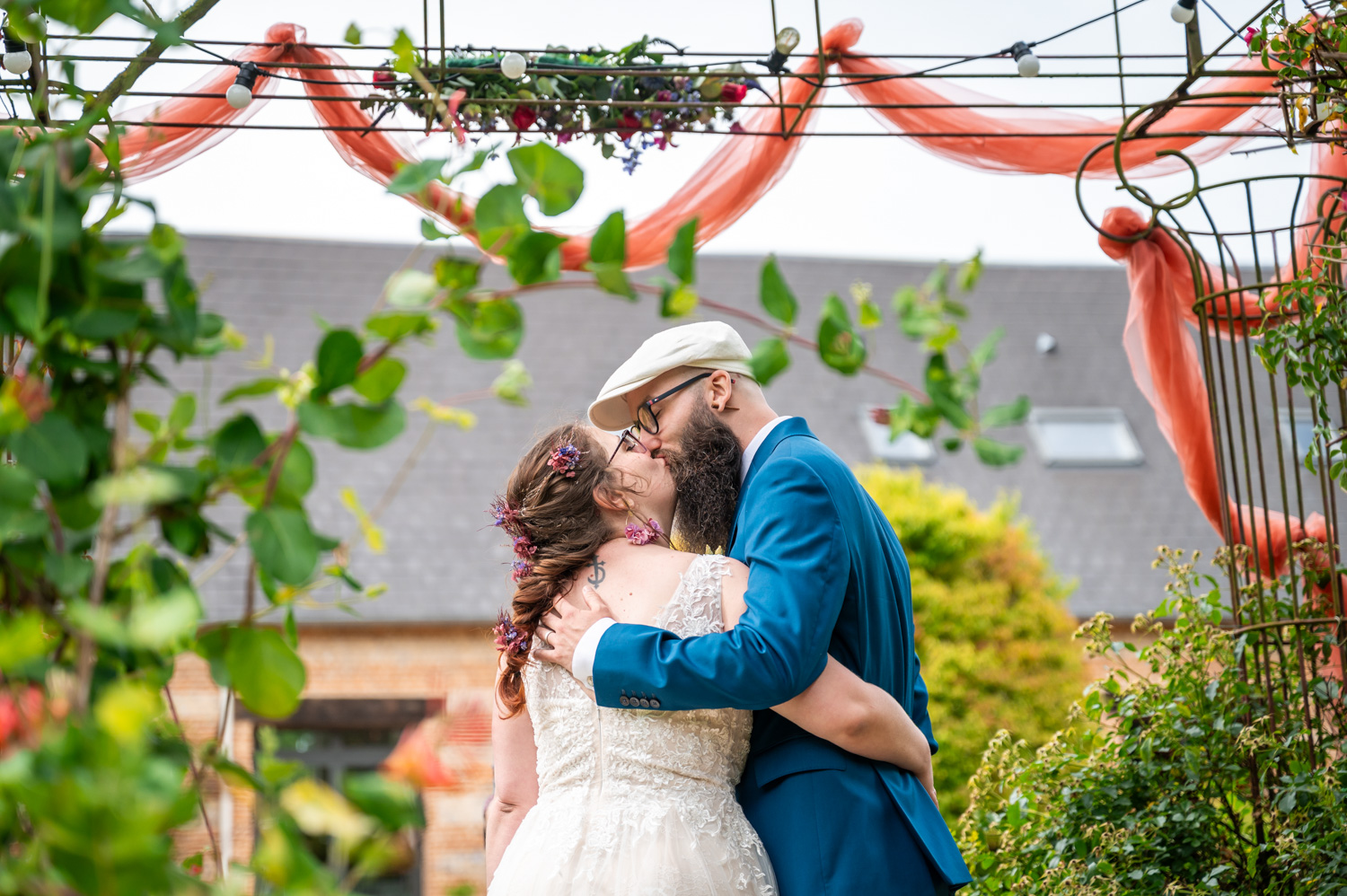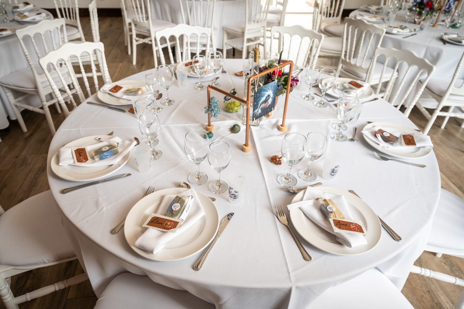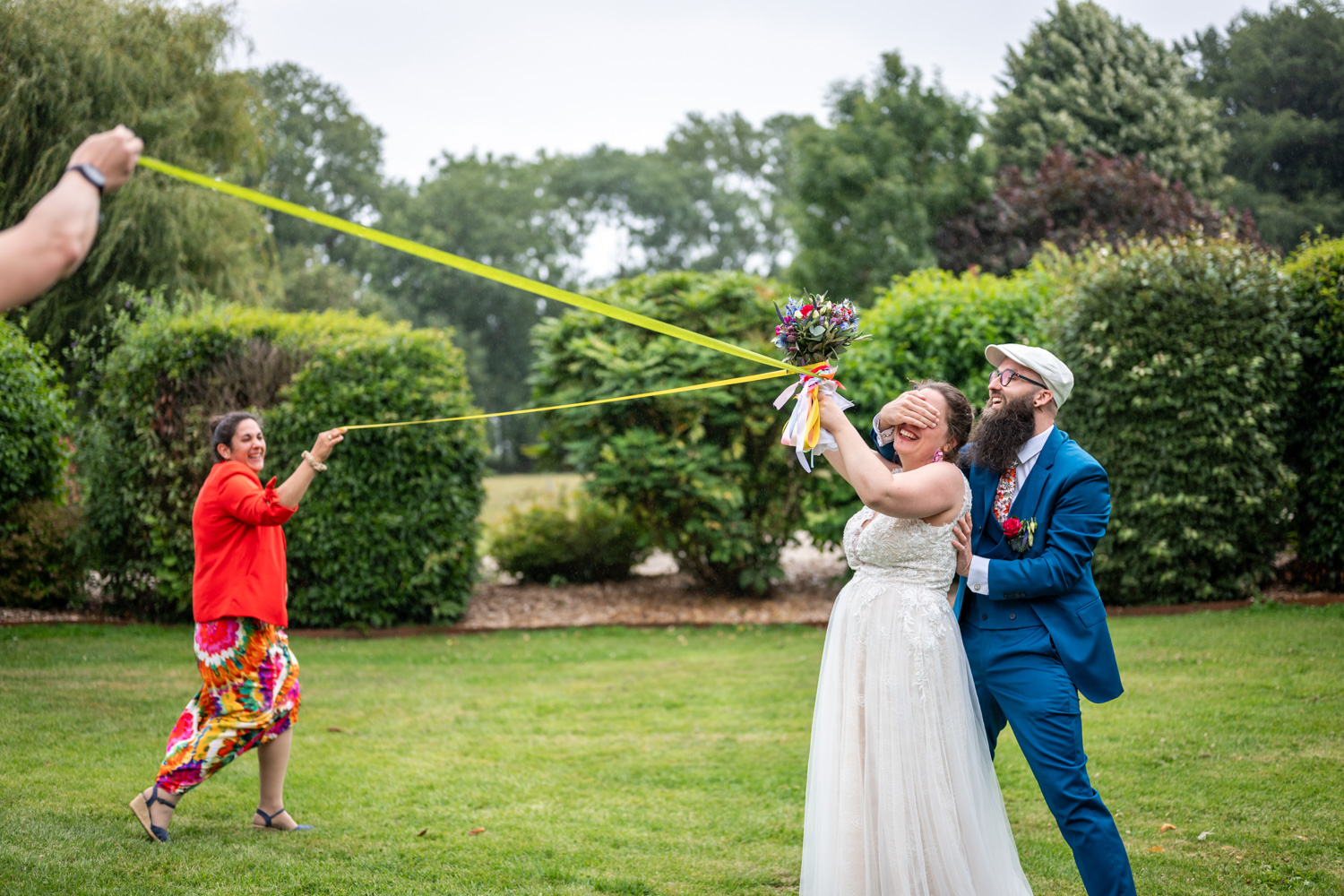 Le jour de leur mariage, ils se sont chacun préparés avec leurs témoins dans une ambiance chill et en musique évidemment ! Puis direction l’hôtel du ville du Havre pour se marier ! La suite de la journée s’est ensuite déroulée intégralement à la Ferme de Drumare pour y célébrer une cérémonie laïque touchante, une cocktail sous la pluie et un repas rythmé à grands coups de riffs de guitare saturés.