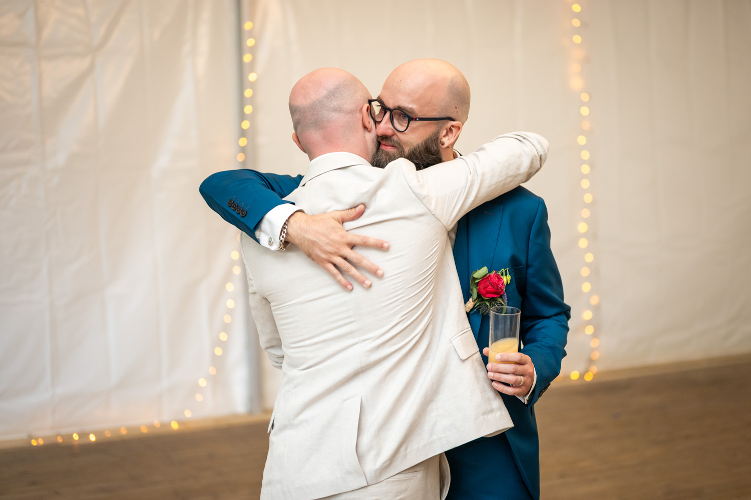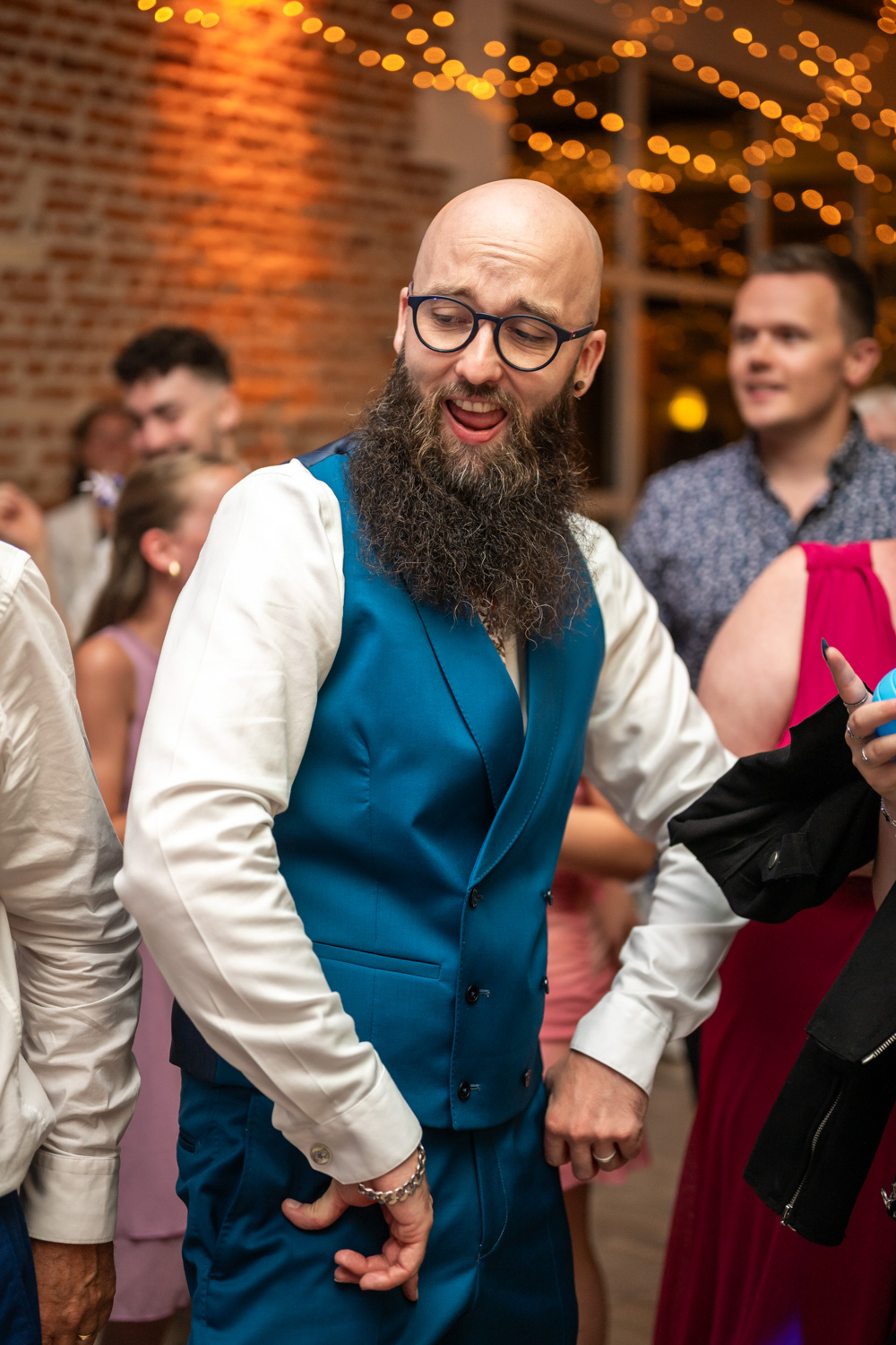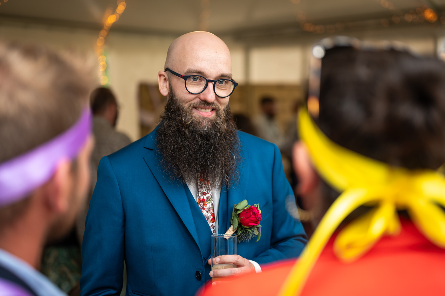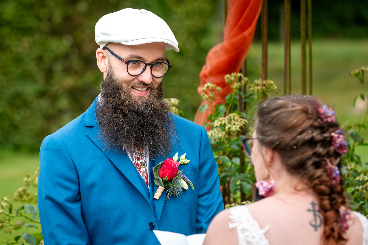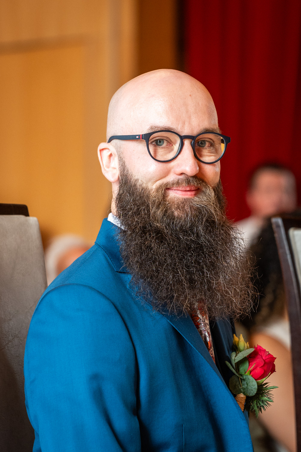 Le jour de leur mariage, ils se sont chacun préparés avec leurs témoins dans une ambiance chill et en musique évidemment ! Puis direction l’hôtel du ville du Havre pour se marier ! La suite de la journée s’est ensuite déroulée intégralement à la Ferme de Drumare pour y célébrer une cérémonie laïque touchante, une cocktail sous la pluie et un repas rythmé à grands coups de riffs de guitare saturés.