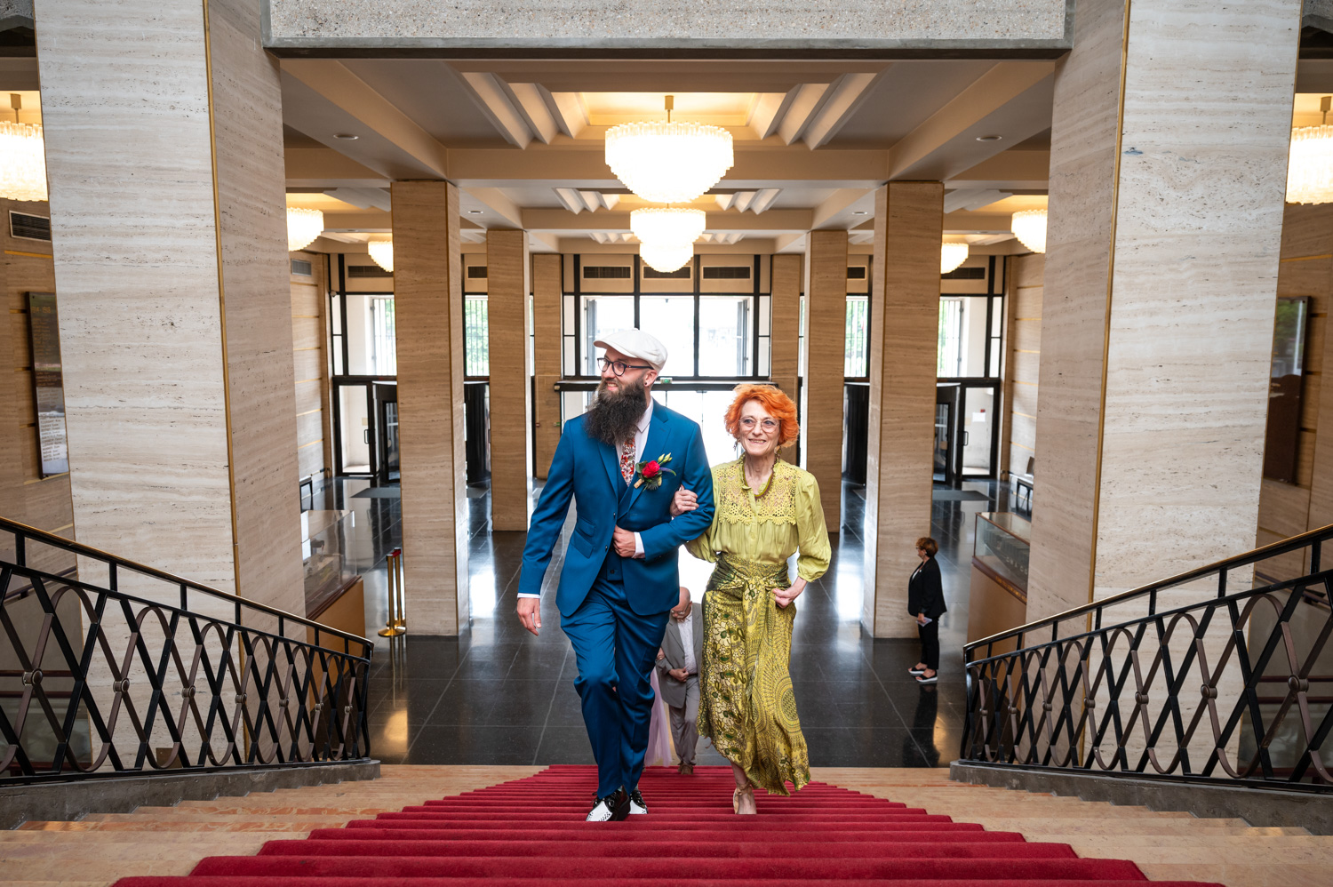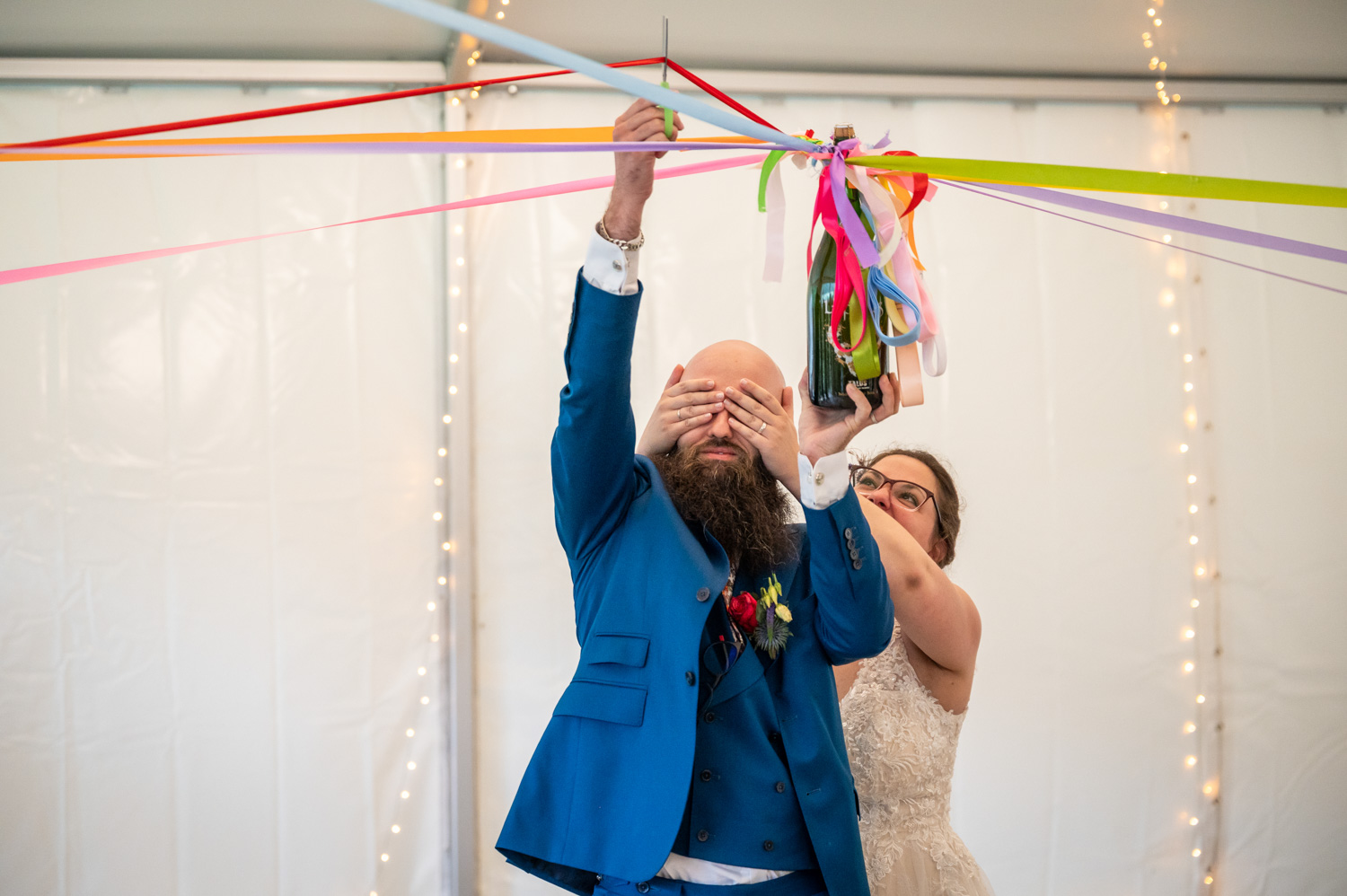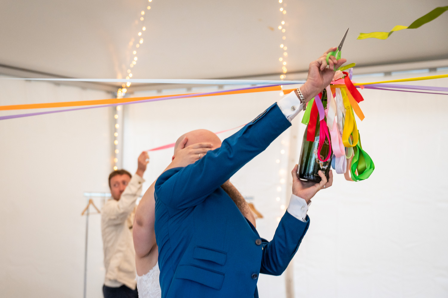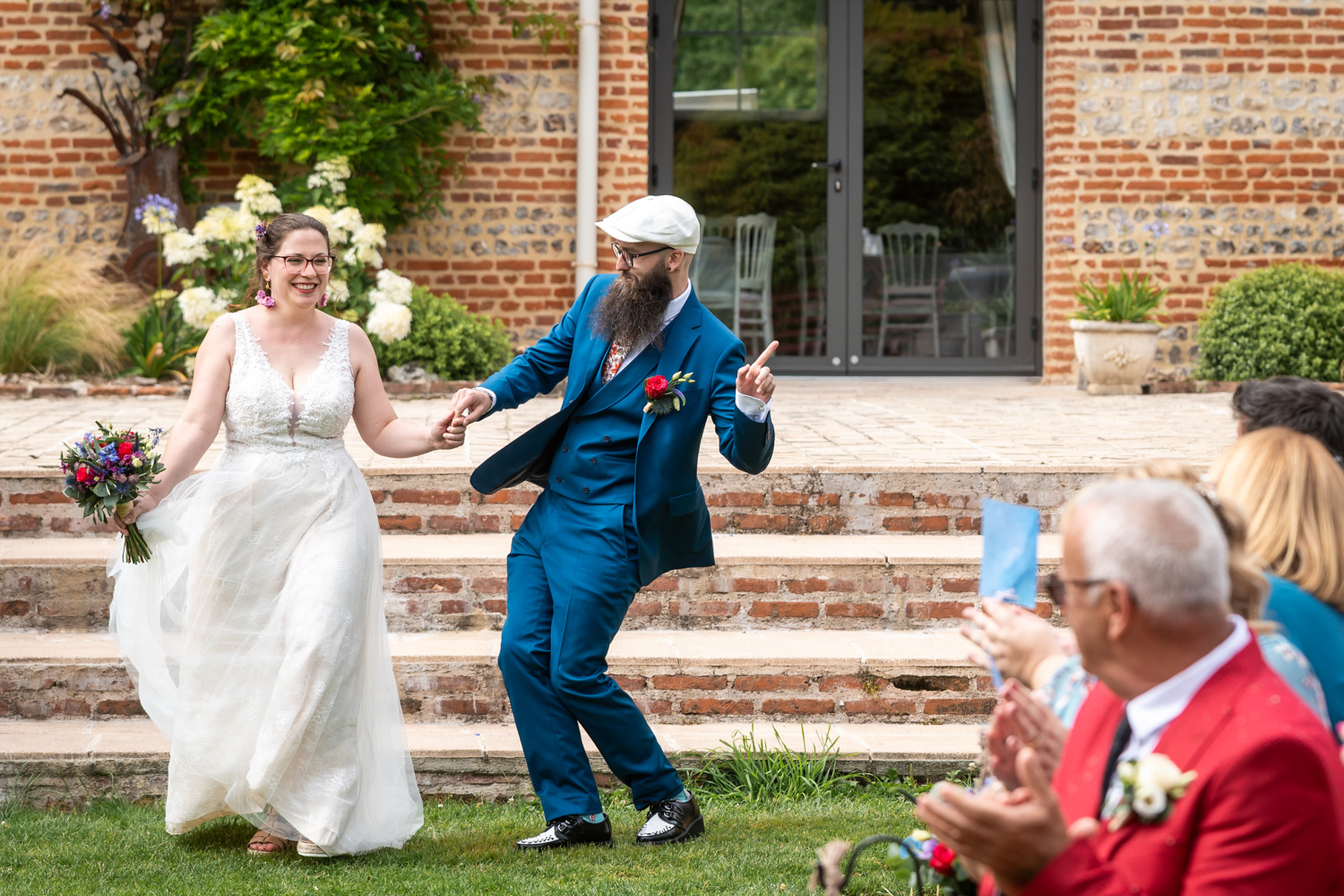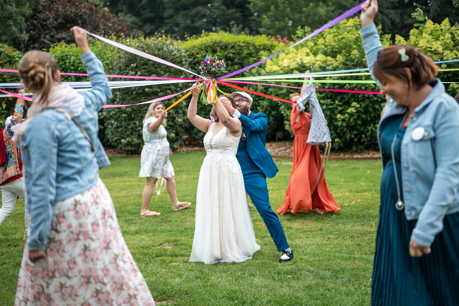 Le jour de leur mariage, ils se sont chacun préparés avec leurs témoins dans une ambiance chill et en musique évidemment ! Puis direction l’hôtel du ville du Havre pour se marier ! La suite de la journée s’est ensuite déroulée intégralement à la Ferme de Drumare pour y célébrer une cérémonie laïque touchante, une cocktail sous la pluie et un repas rythmé à grands coups de riffs de guitare saturés.