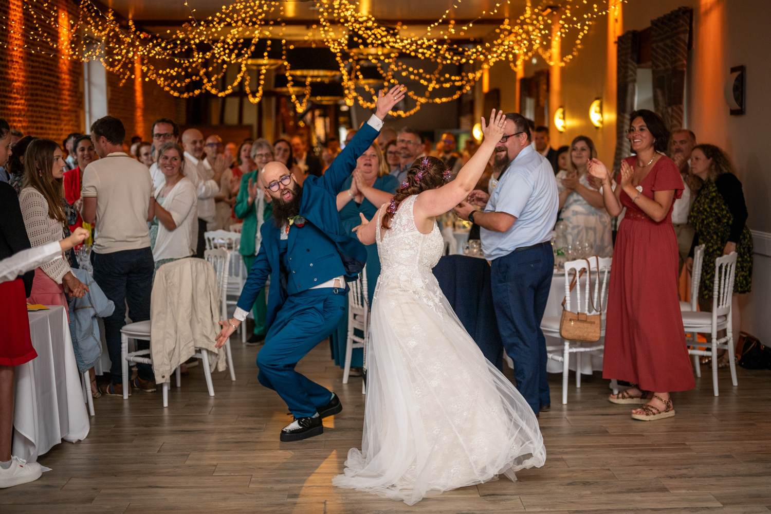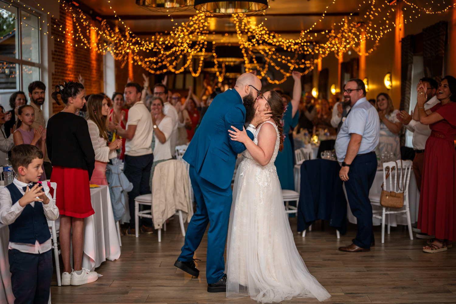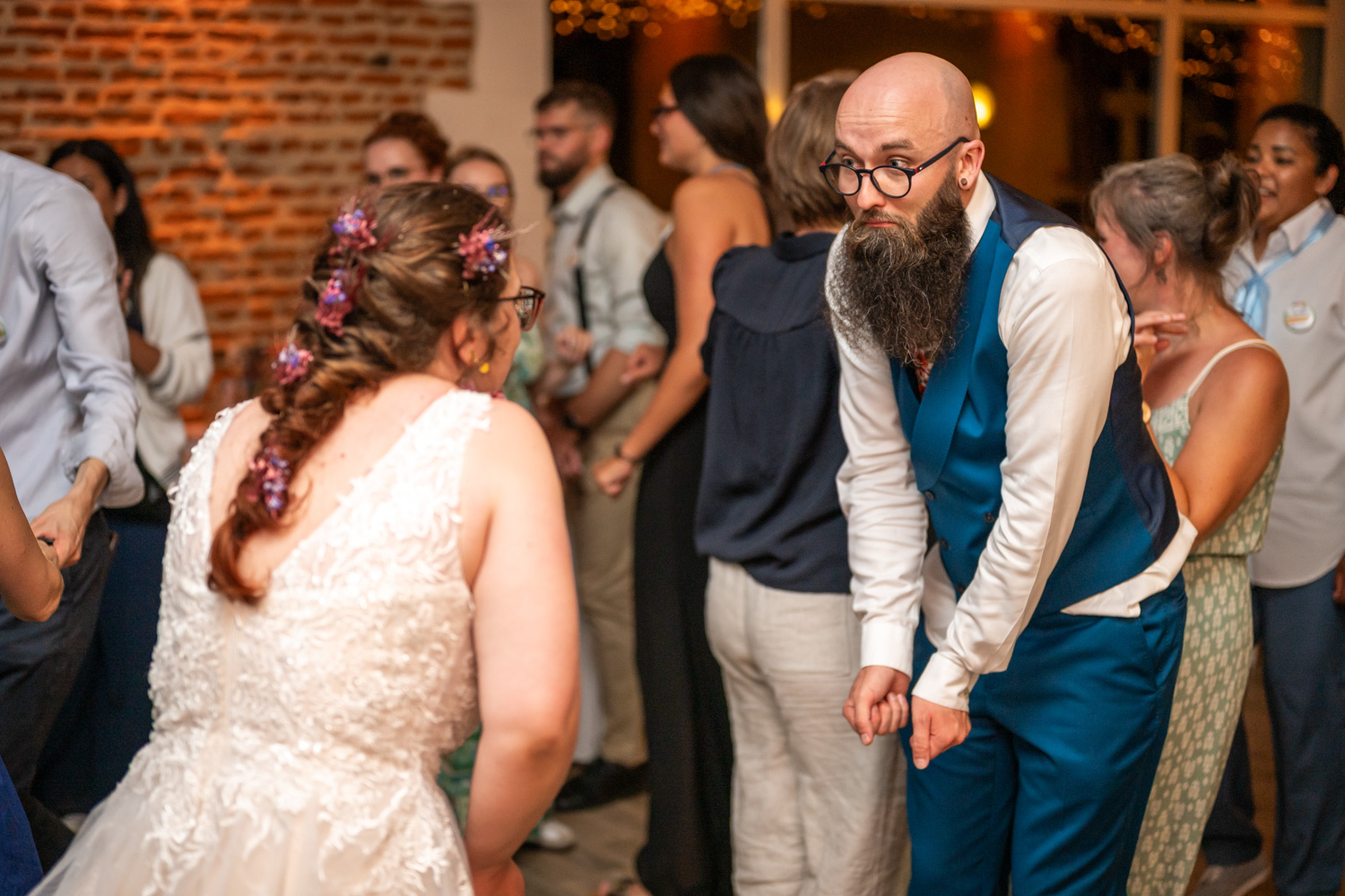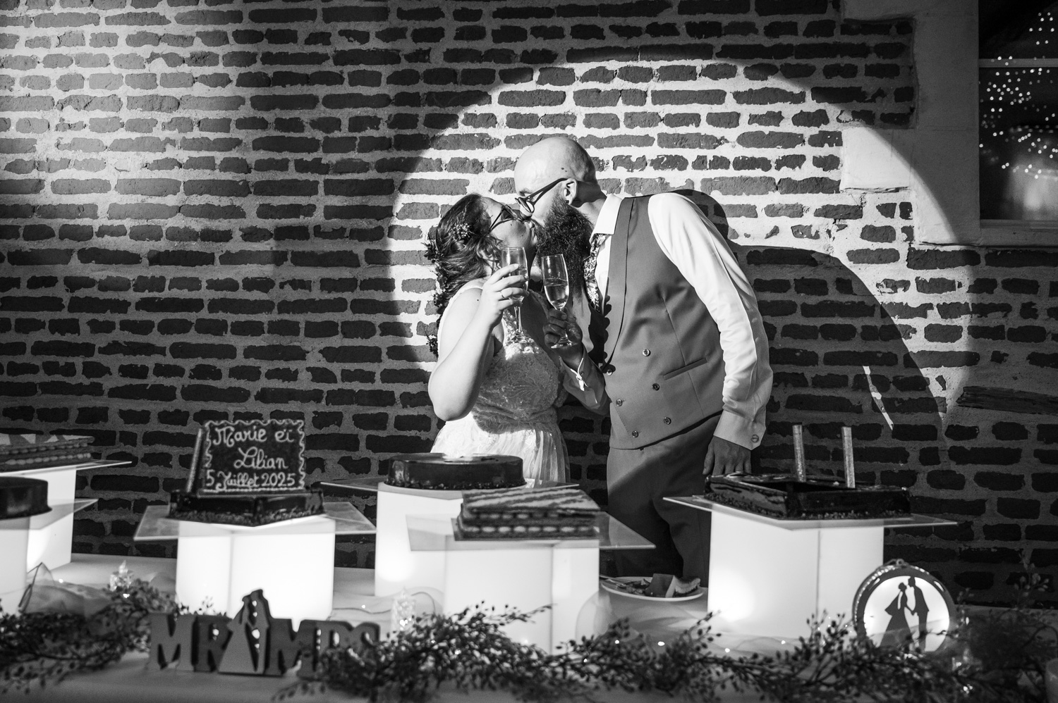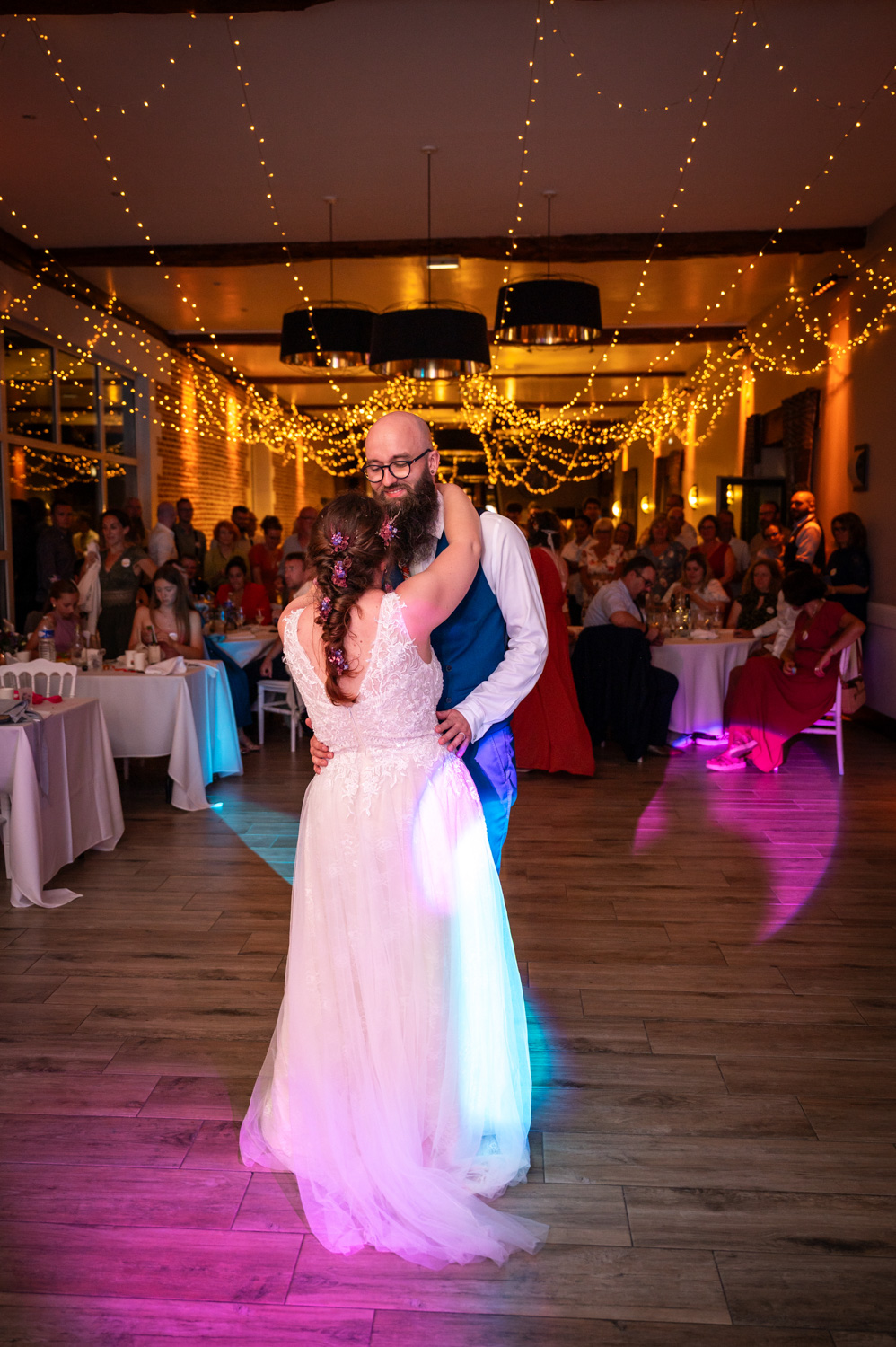 Il y a des clients avec qui tu fais un RDV autour d’un café, d’autres autour d’une bière, ou encore simplement en visio… Avec Marie et Lilian, on s’est rencontrés au Hellfest, dans la file du merch ! Vous vous doutez bien qu’a partir de là, il était évident qu’on était trrèèèès motivés à être leurs photographes de mariage. Lors qu’ils nous ont dit « Nous pour notre ouverture du bal on imagine bien faire une valse sur Machine Head. », nous nous sommes regardés en mode « Euuuh, pardon ? » l’histoire nous prouvera que c’est bel et bien possible 🙂