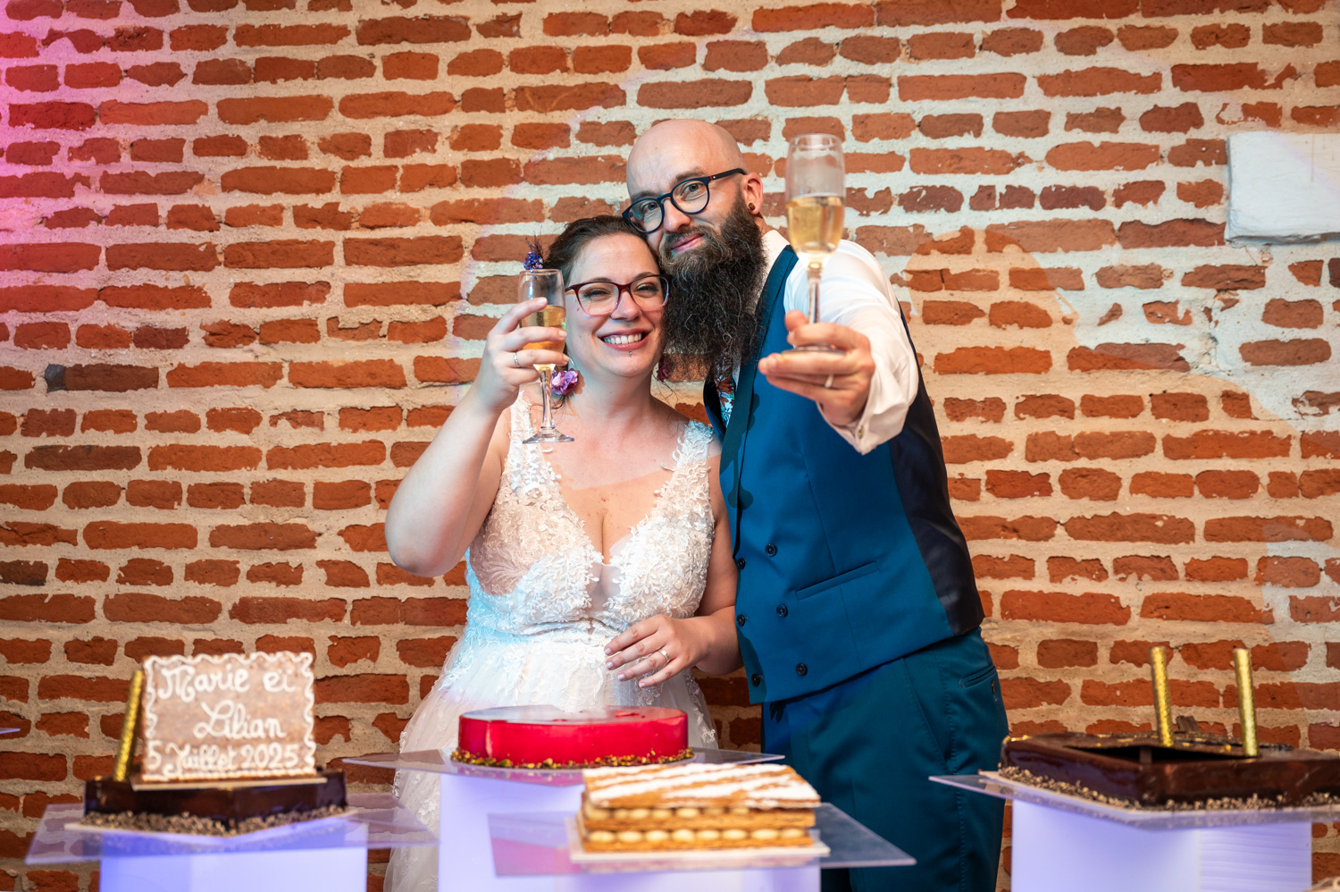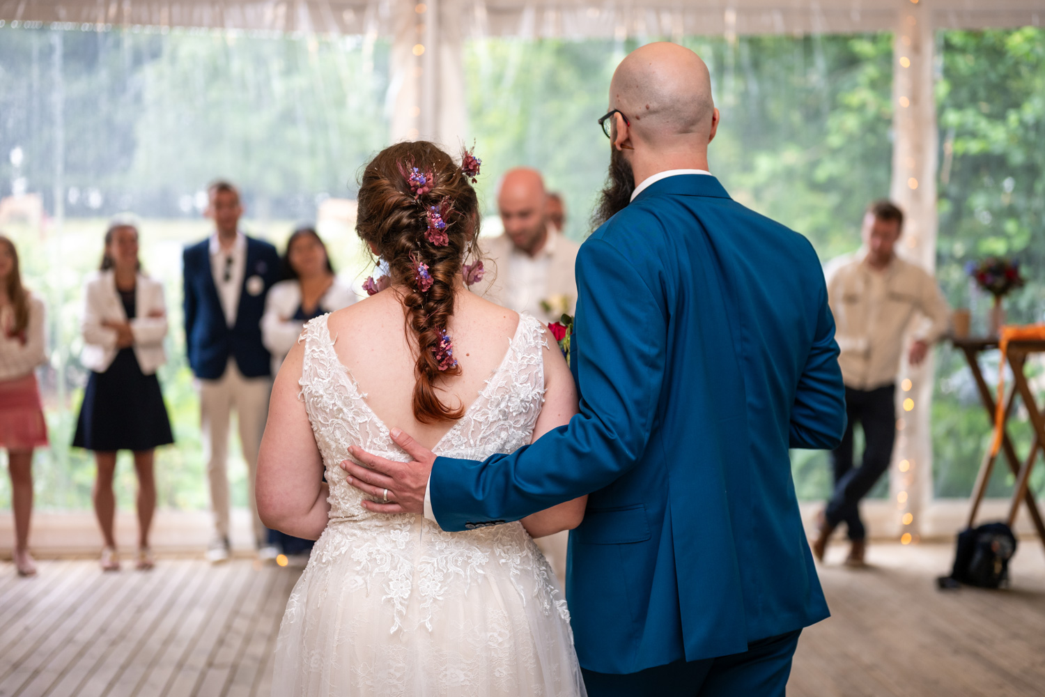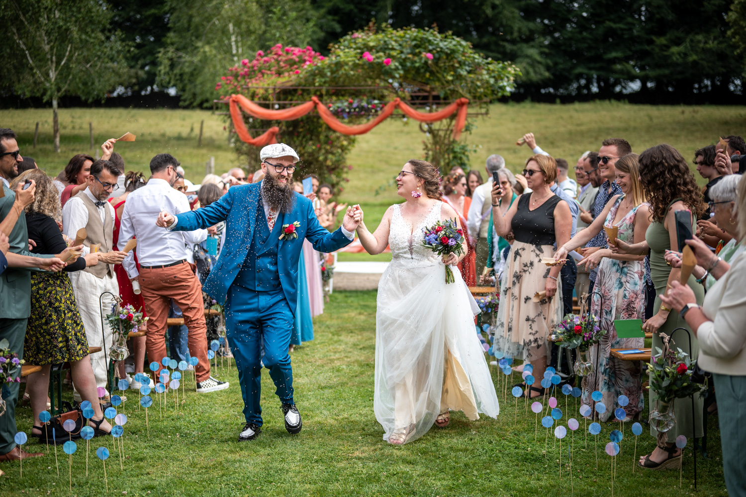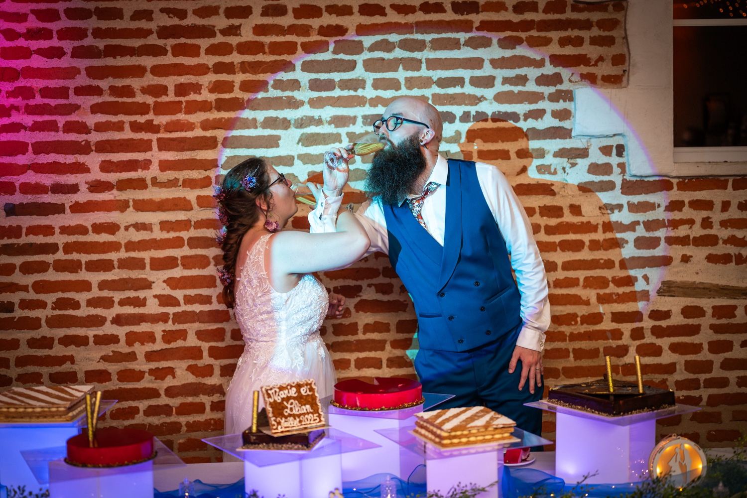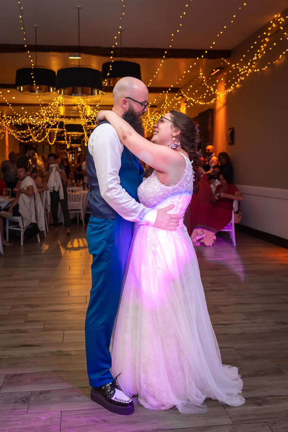 Il y a des clients avec qui tu fais un RDV autour d’un café, d’autres autour d’une bière, ou encore simplement en visio… Avec Marie et Lilian, on s’est rencontrés au Hellfest, dans la file du merch ! Vous vous doutez bien qu’a partir de là, il était évident qu’on était trrèèèès motivés à être leurs photographes de mariage. Lors qu’ils nous ont dit « Nous pour notre ouverture du bal on imagine bien faire une valse sur Machine Head. », nous nous sommes regardés en mode « Euuuh, pardon ? » l’histoire nous prouvera que c’est bel et bien possible 🙂