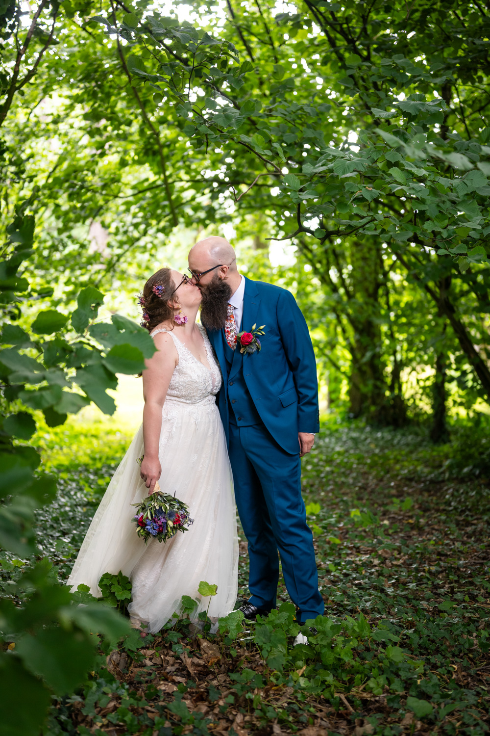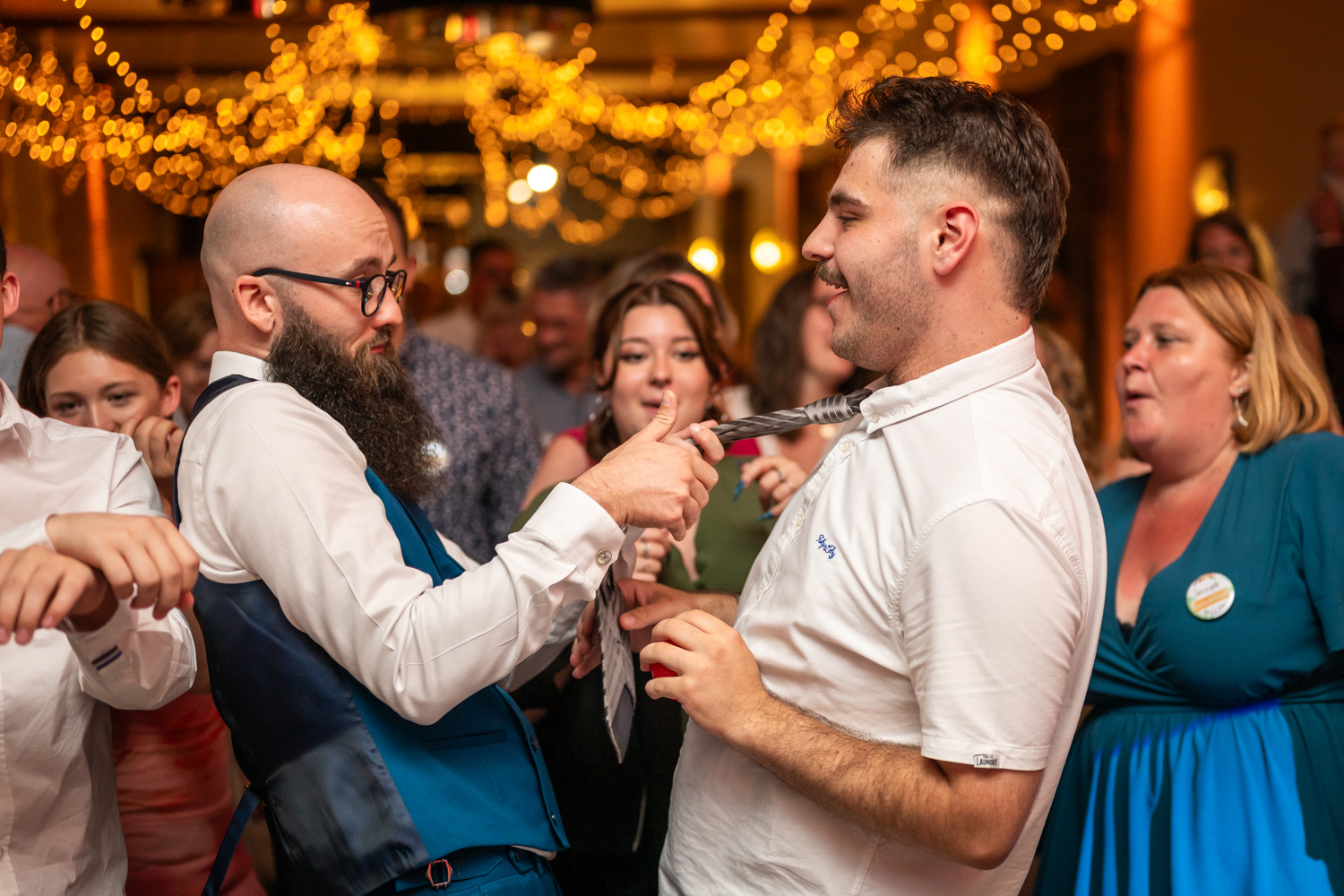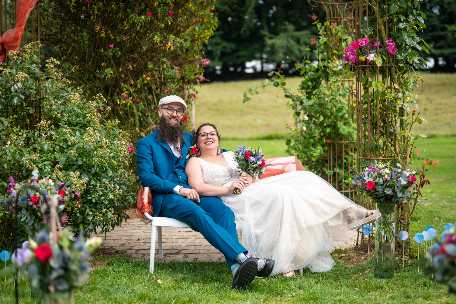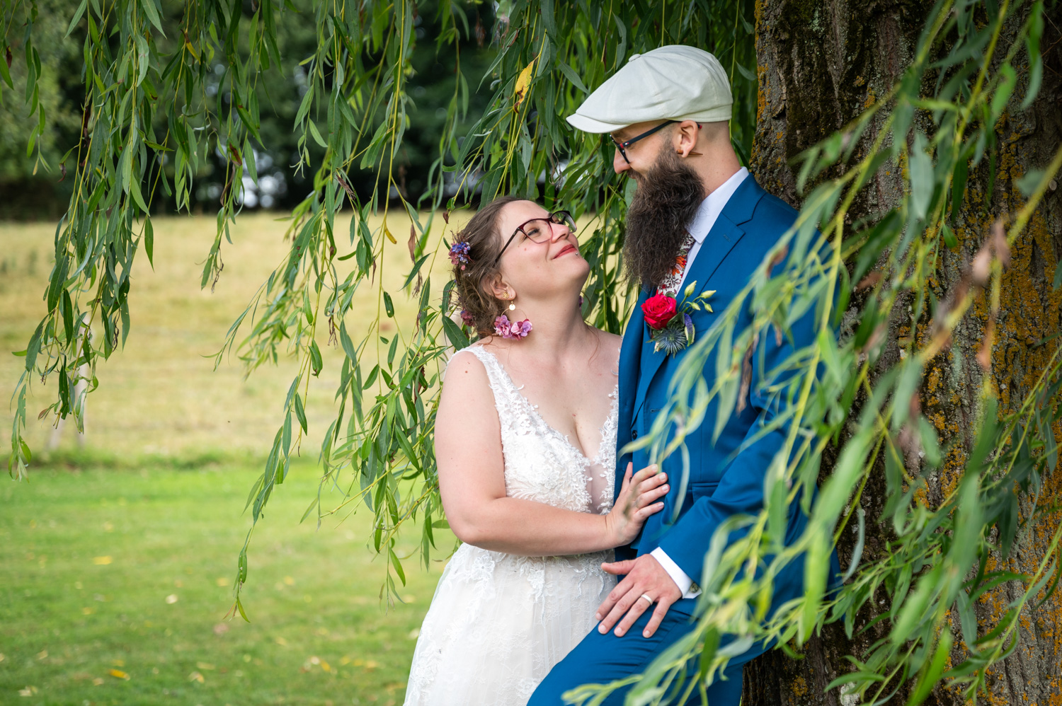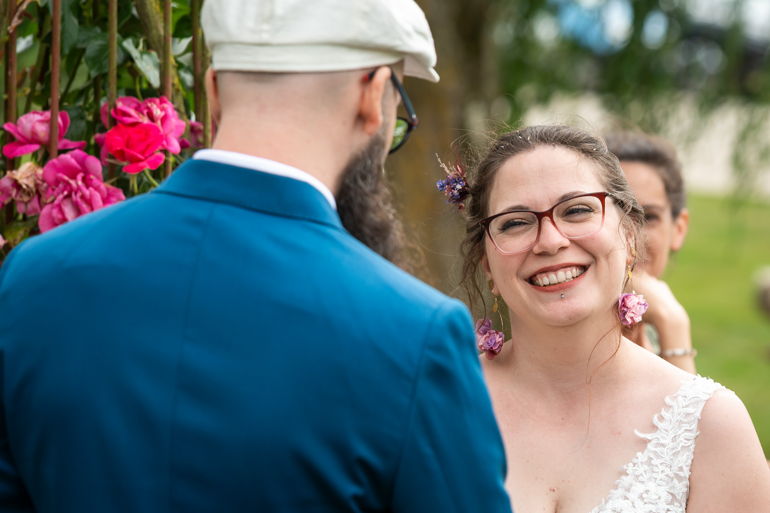 Il y a des clients avec qui tu fais un RDV autour d’un café, d’autres autour d’une bière, ou encore simplement en visio… Avec Marie et Lilian, on s’est rencontrés au Hellfest, dans la file du merch ! Vous vous doutez bien qu’a partir de là, il était évident qu’on était trrèèèès motivés à être leurs photographes de mariage. Lors qu’ils nous ont dit « Nous pour notre ouverture du bal on imagine bien faire une valse sur Machine Head. », nous nous sommes regardés en mode « Euuuh, pardon ? » l’histoire nous prouvera que c’est bel et bien possible 🙂