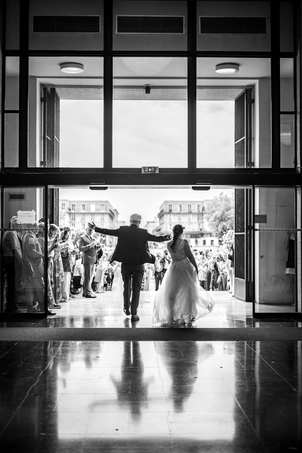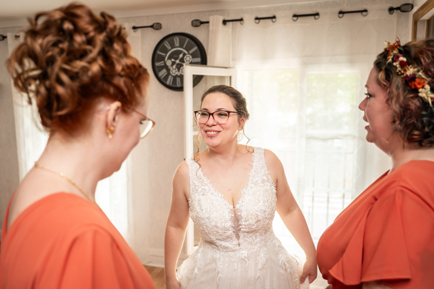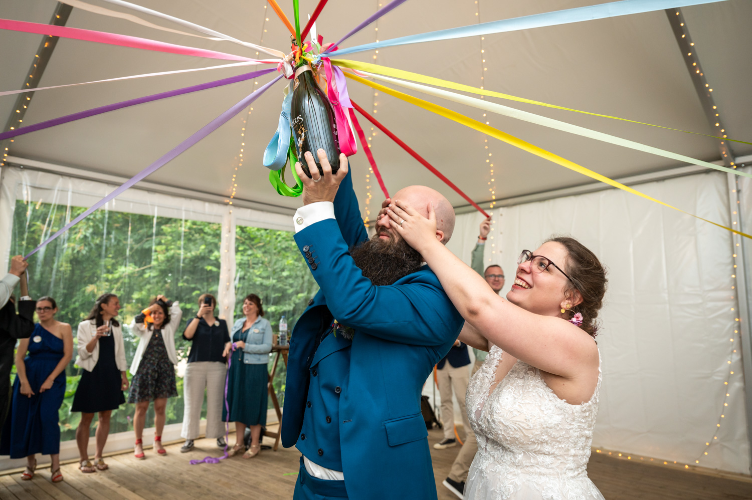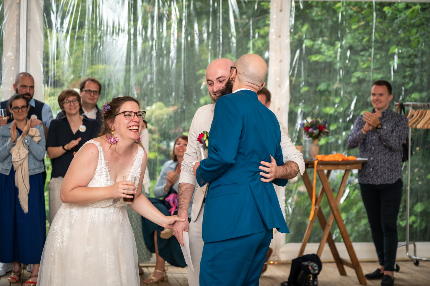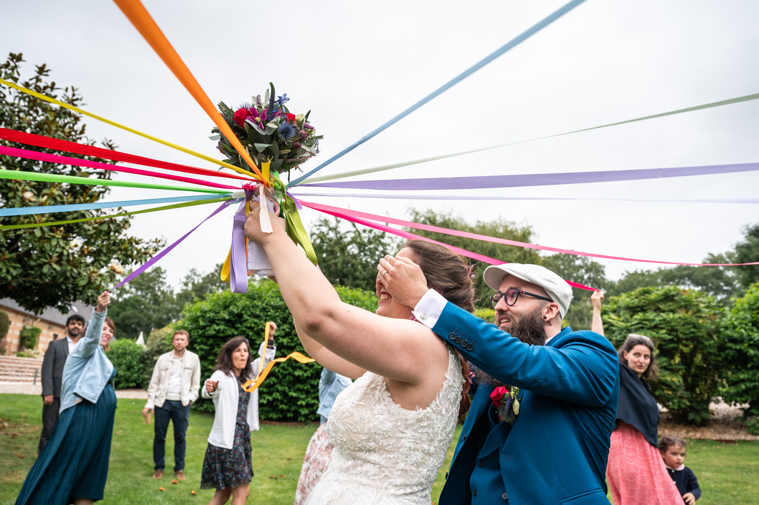 Il y a des clients avec qui tu fais un RDV autour d’un café, d’autres autour d’une bière, ou encore simplement en visio… Avec Marie et Lilian, on s’est rencontrés au Hellfest, dans la file du merch ! Vous vous doutez bien qu’a partir de là, il était évident qu’on était trrèèèès motivés à être leurs photographes de mariage. Lors qu’ils nous ont dit « Nous pour notre ouverture du bal on imagine bien faire une valse sur Machine Head. », nous nous sommes regardés en mode « Euuuh, pardon ? » l’histoire nous prouvera que c’est bel et bien possible 🙂