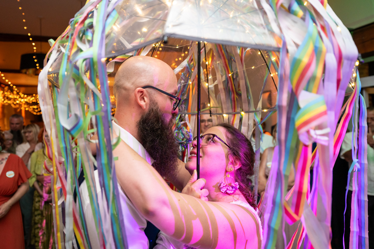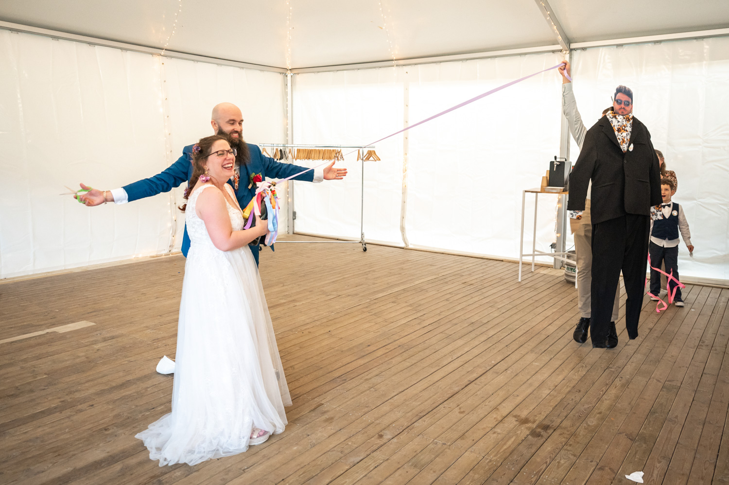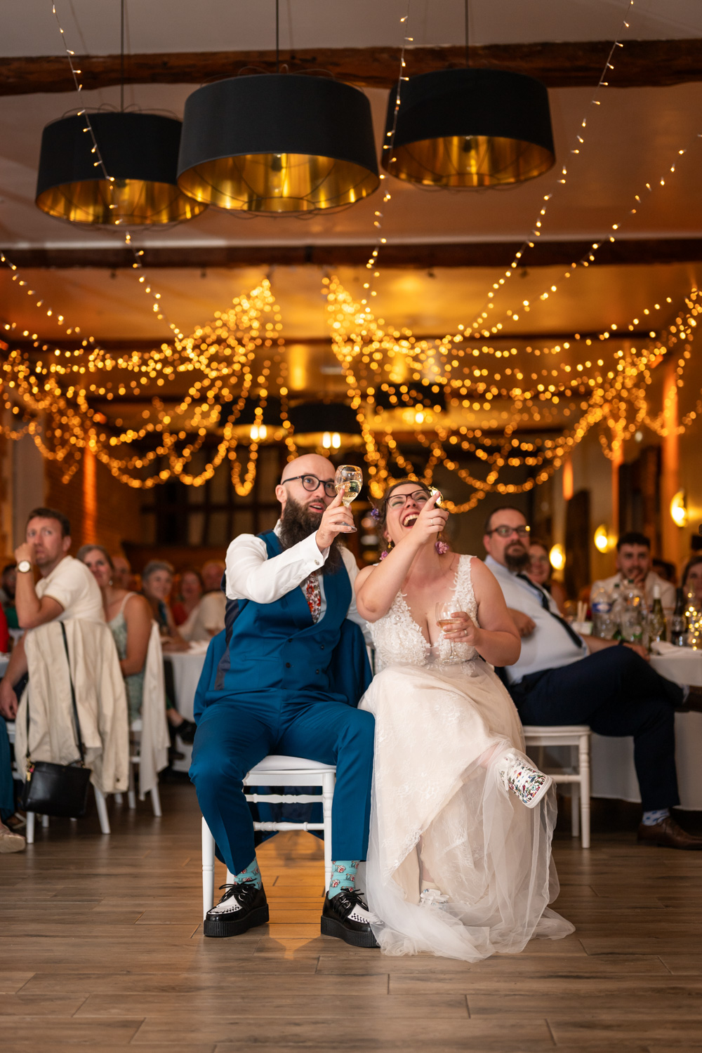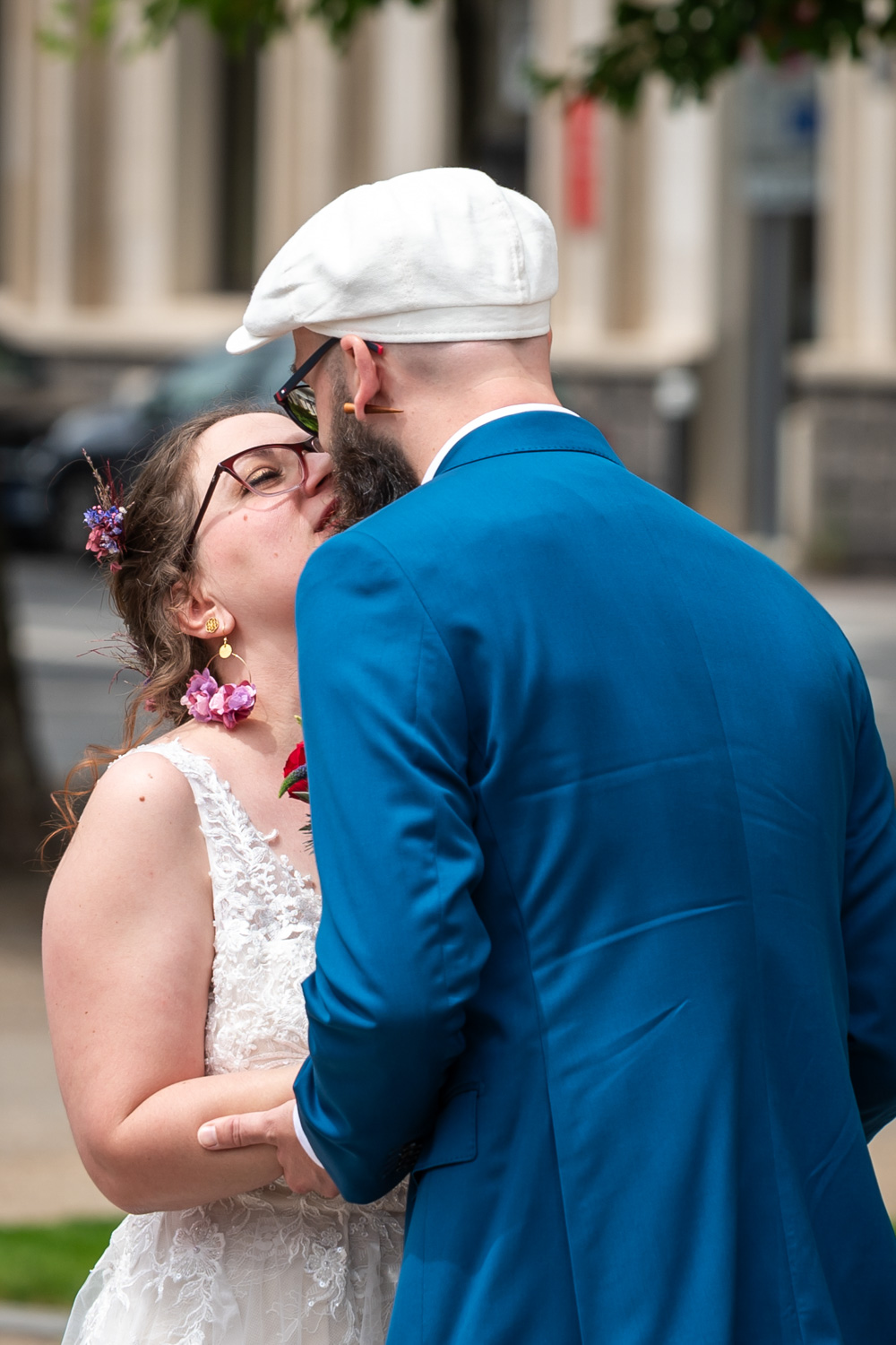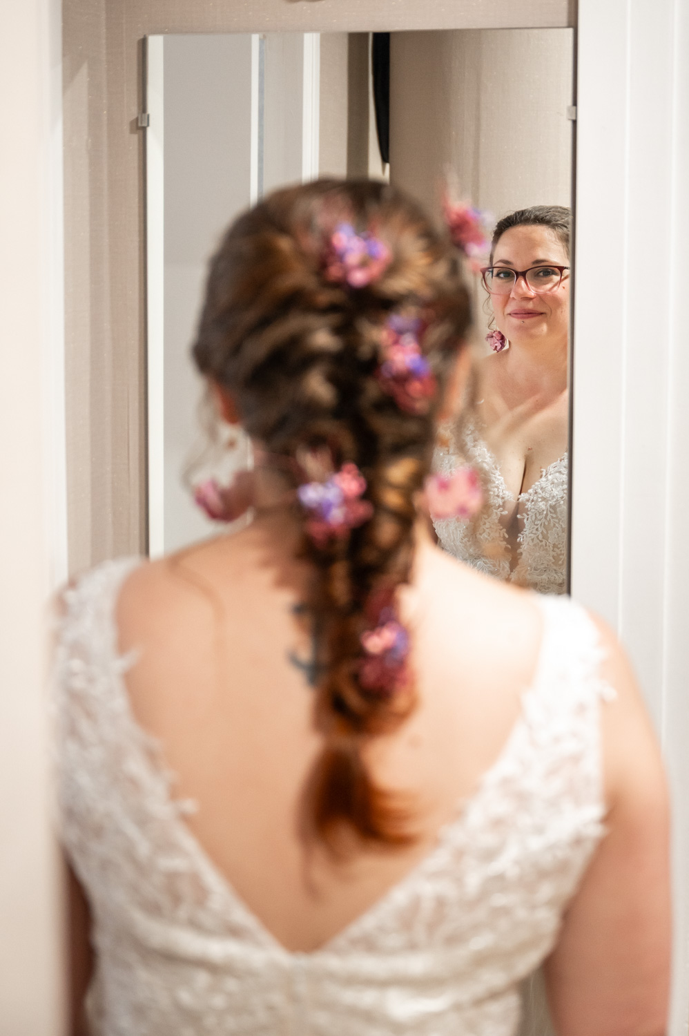 Il y a des clients avec qui tu fais un RDV autour d’un café, d’autres autour d’une bière, ou encore simplement en visio… Avec Marie et Lilian, on s’est rencontrés au Hellfest, dans la file du merch ! Vous vous doutez bien qu’a partir de là, il était évident qu’on était trrèèèès motivés à être leurs photographes de mariage. Lors qu’ils nous ont dit « Nous pour notre ouverture du bal on imagine bien faire une valse sur Machine Head. », nous nous sommes regardés en mode « Euuuh, pardon ? » l’histoire nous prouvera que c’est bel et bien possible 🙂